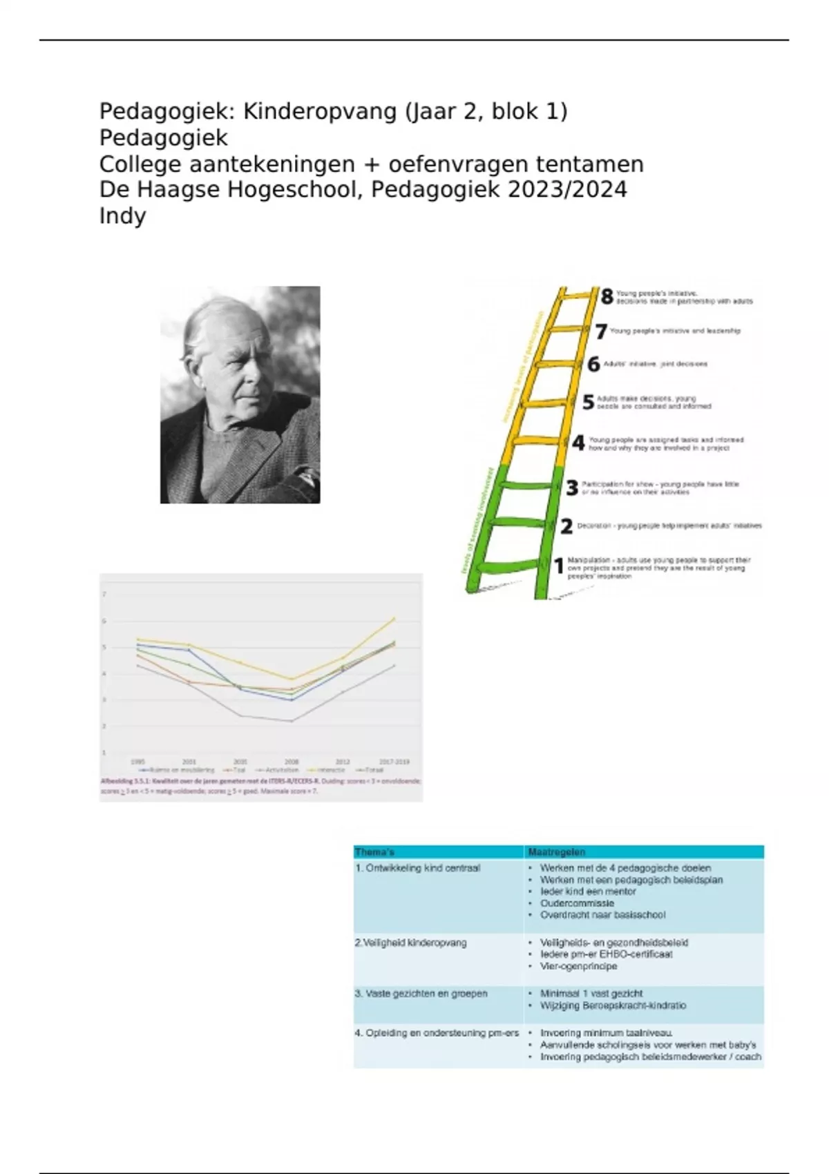 Volledige samenvatting van de hoorcolleges van pedagogiek jaar 2, blok 1. Tentamenstof wordt duidelijk aangeven, ook voorzien handige illustraties en oefenvragen! Zie mijn account voor de andere vakken en blokken.