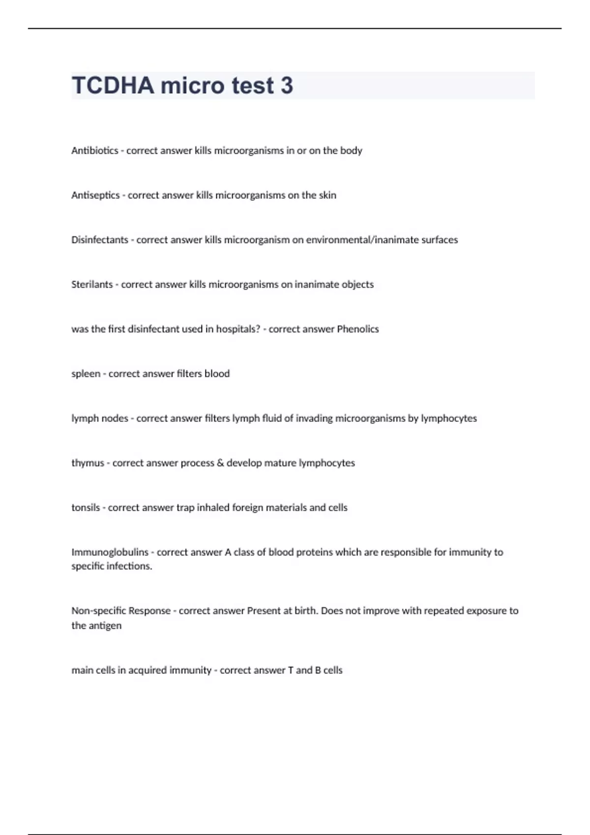 TCDHA micro test 3 question n answers graded A+ 2023 /2024