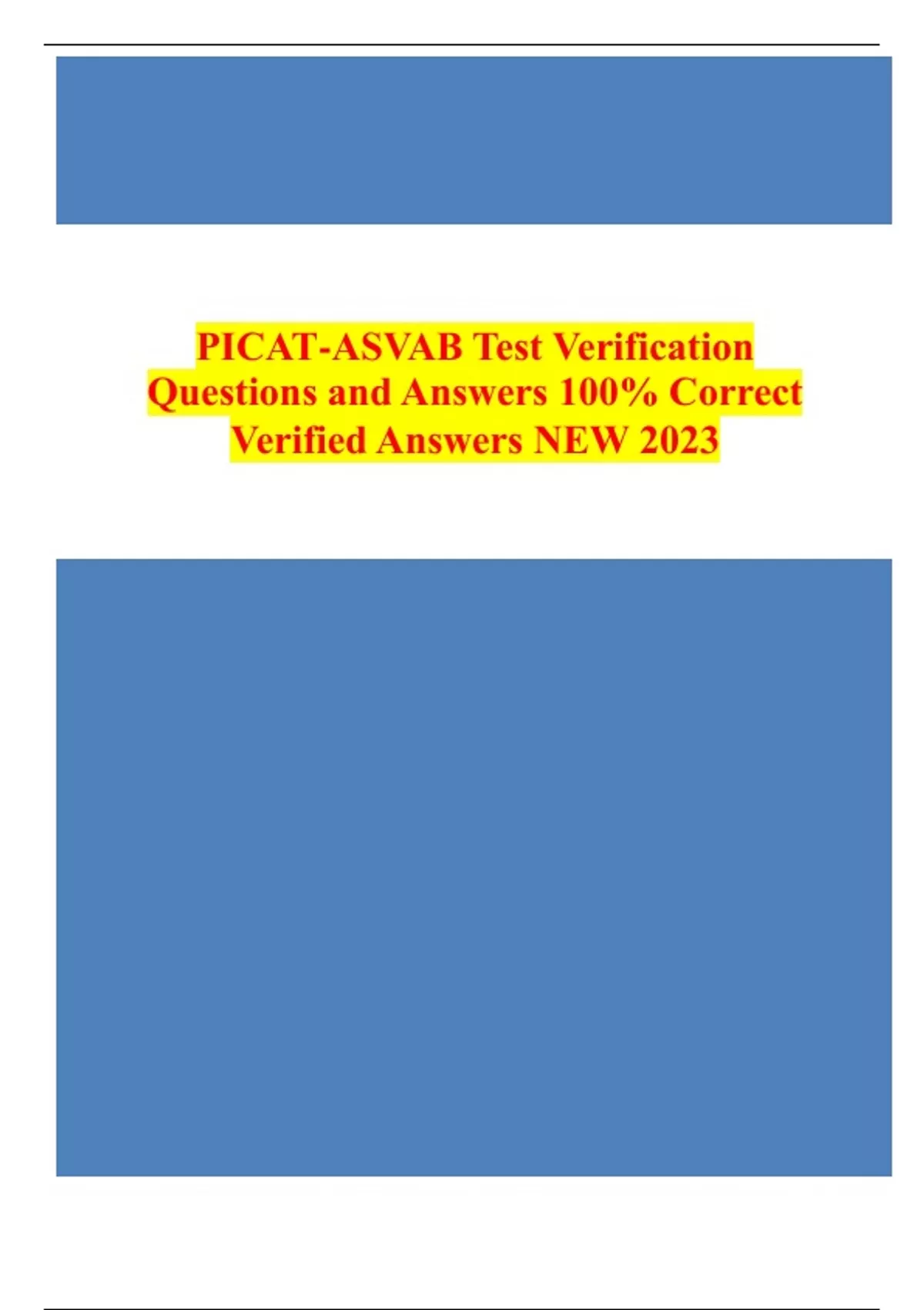 PICAT-ASVAB Test Verification Questions and Answers % Correct Verified Answers