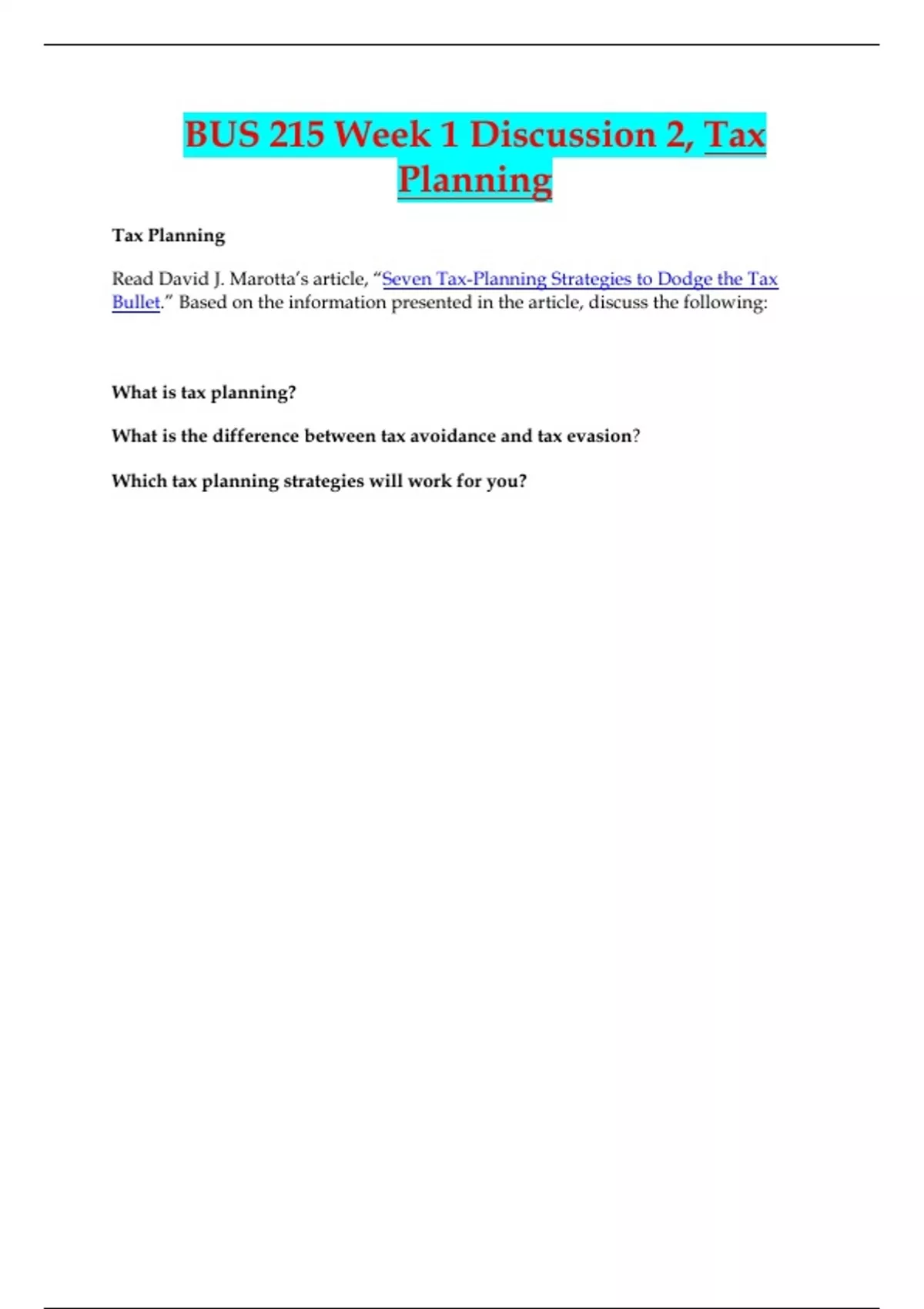 BUS 215 Week 1 Discussion 2, Correctly Answered /LATEST UPDATE VERSION/ GRADED A+
