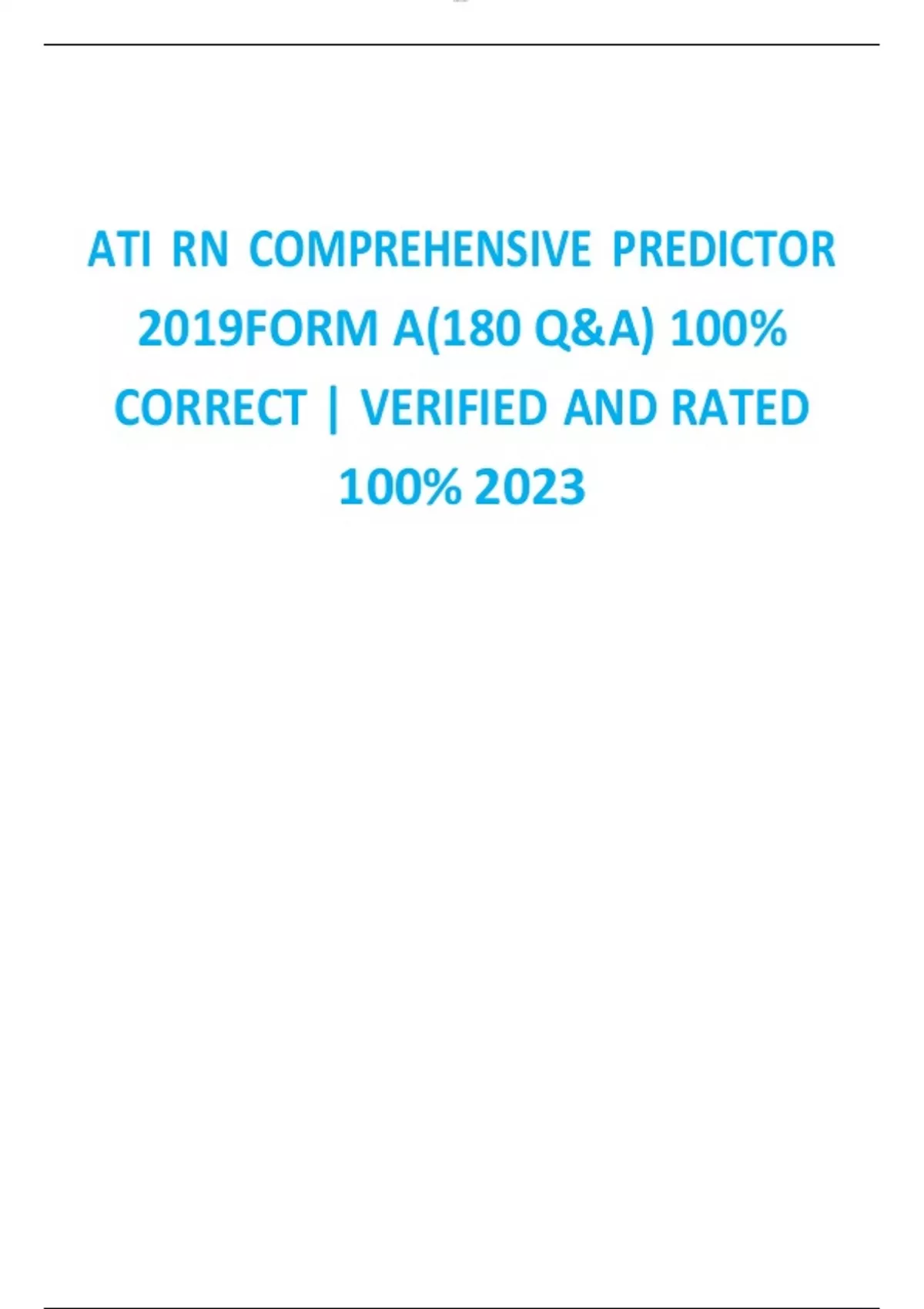 ATI RN COMPREHENSIVE PREDICTOR 2023 FORM A(180 Q&A) 100% CORRECT | VERIFIED AND RATED 100% 2023