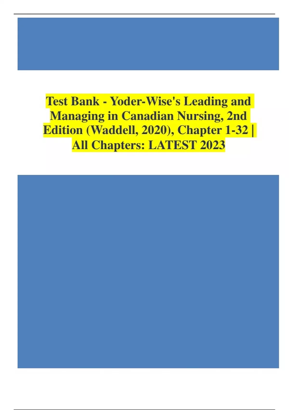 , TEST BANK FOR YODER-WISE’S LEADING AND MANAGING IN CANADIAN NURSING, 2ND