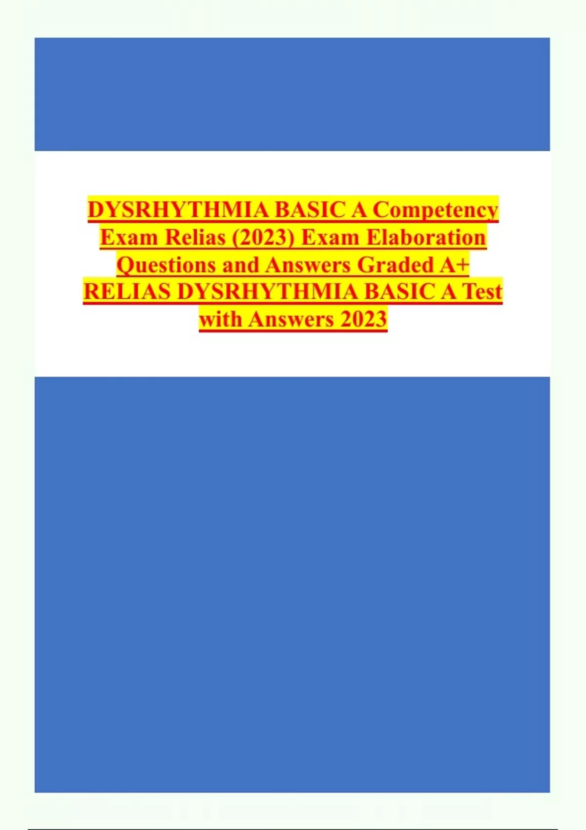 DYSRHYTHMIA BASIC A Competency Exam Relias (2023) Exam Elaboration Questions and Answers Graded A+ RELIAS DYSRHYTHMIA BASIC A Test with Answers 2023