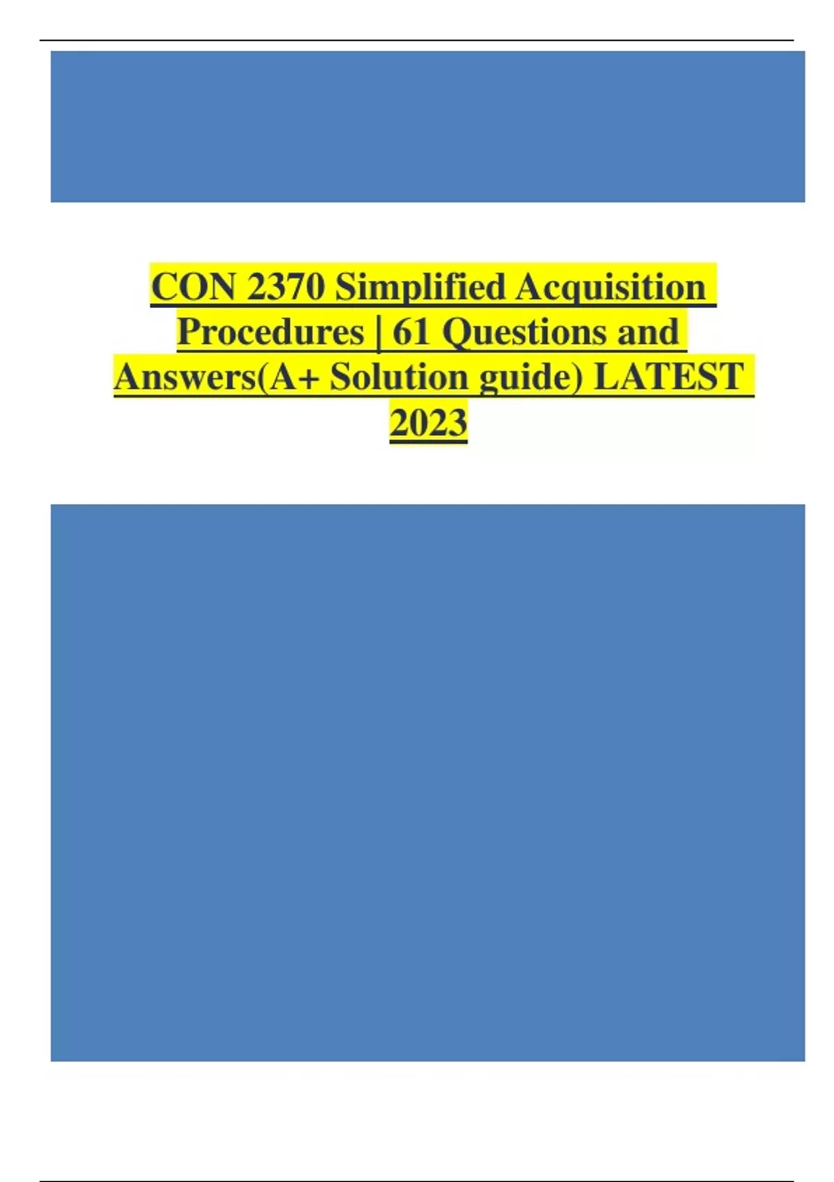 CON 2370 Simplified Acquisition Procedures | 61 Questions and Answers(A+ Solution guide)