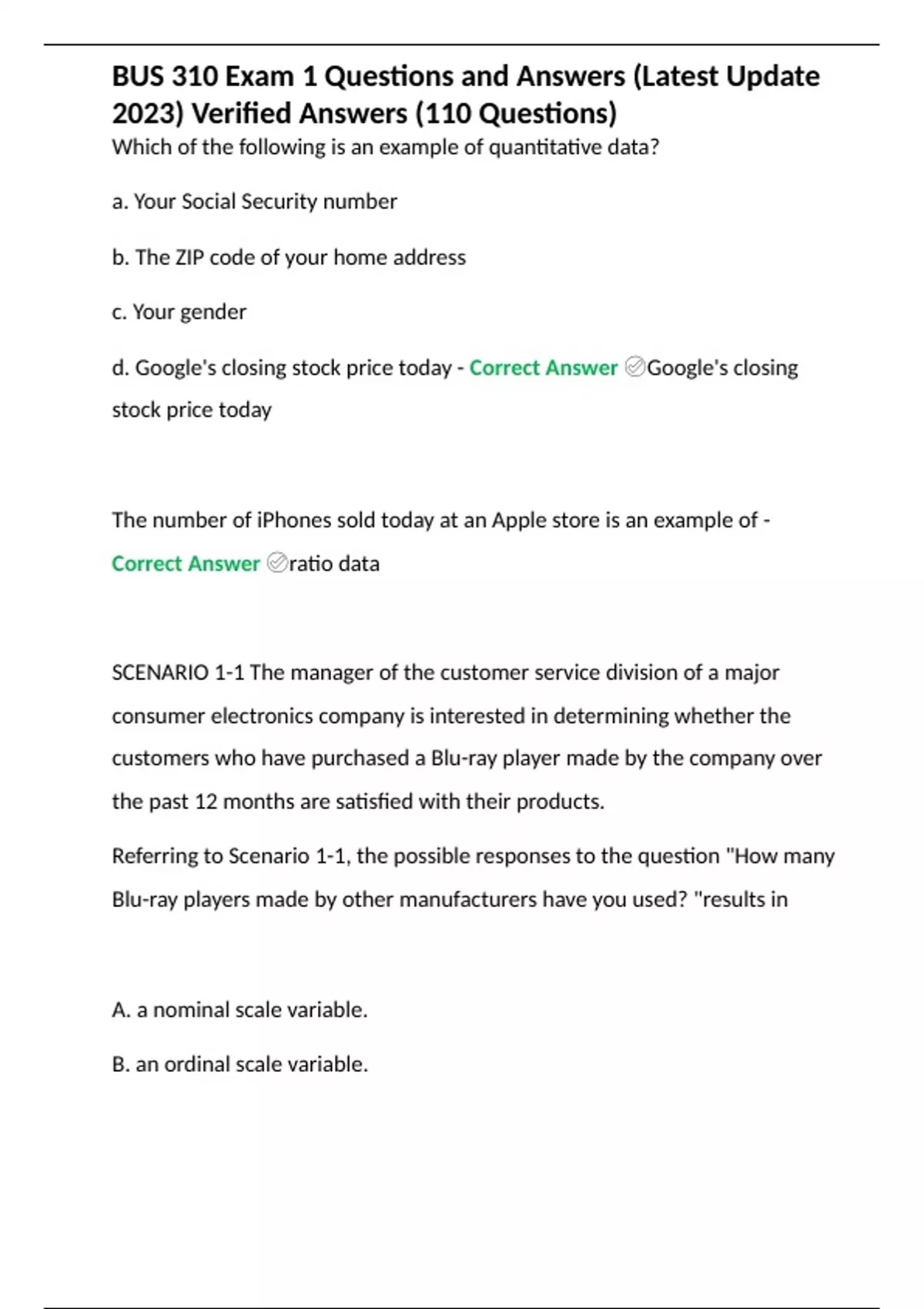 BUS 310 Exam 1 Questions and Answers (Latest Update 2023) Verified Answers (110 Questions)