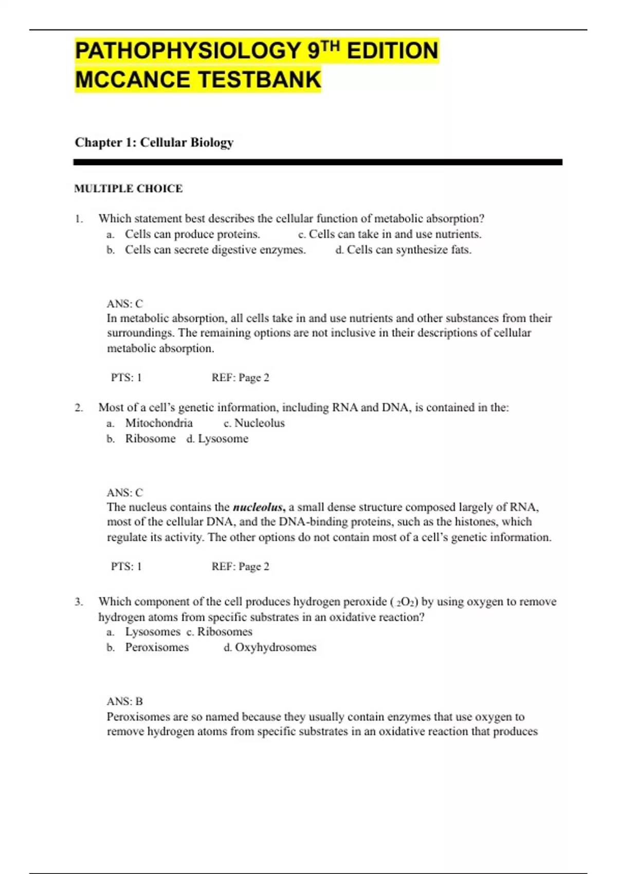 PATHOPHYSIOLOGY 9TH EDITION MCCANCE TESTBANK