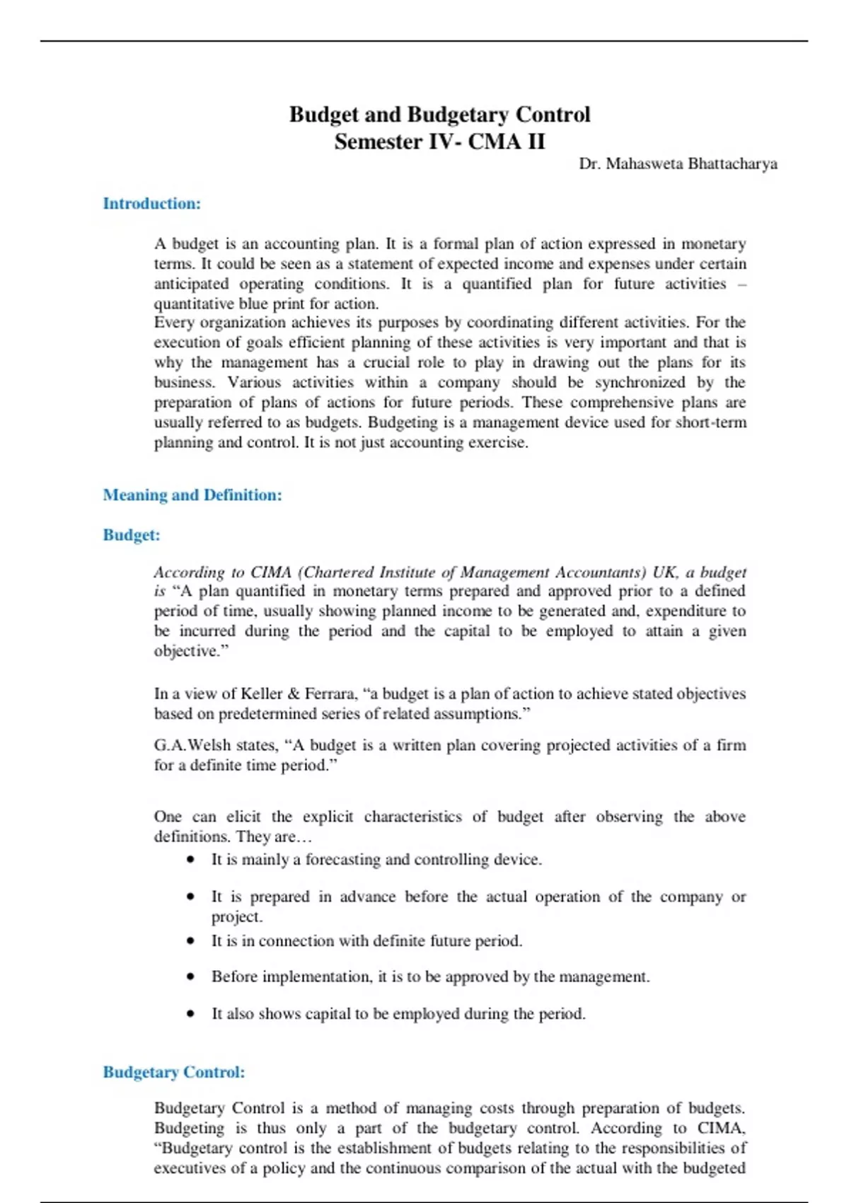 Class notes BUS 5110 Management Accounting (Ac)