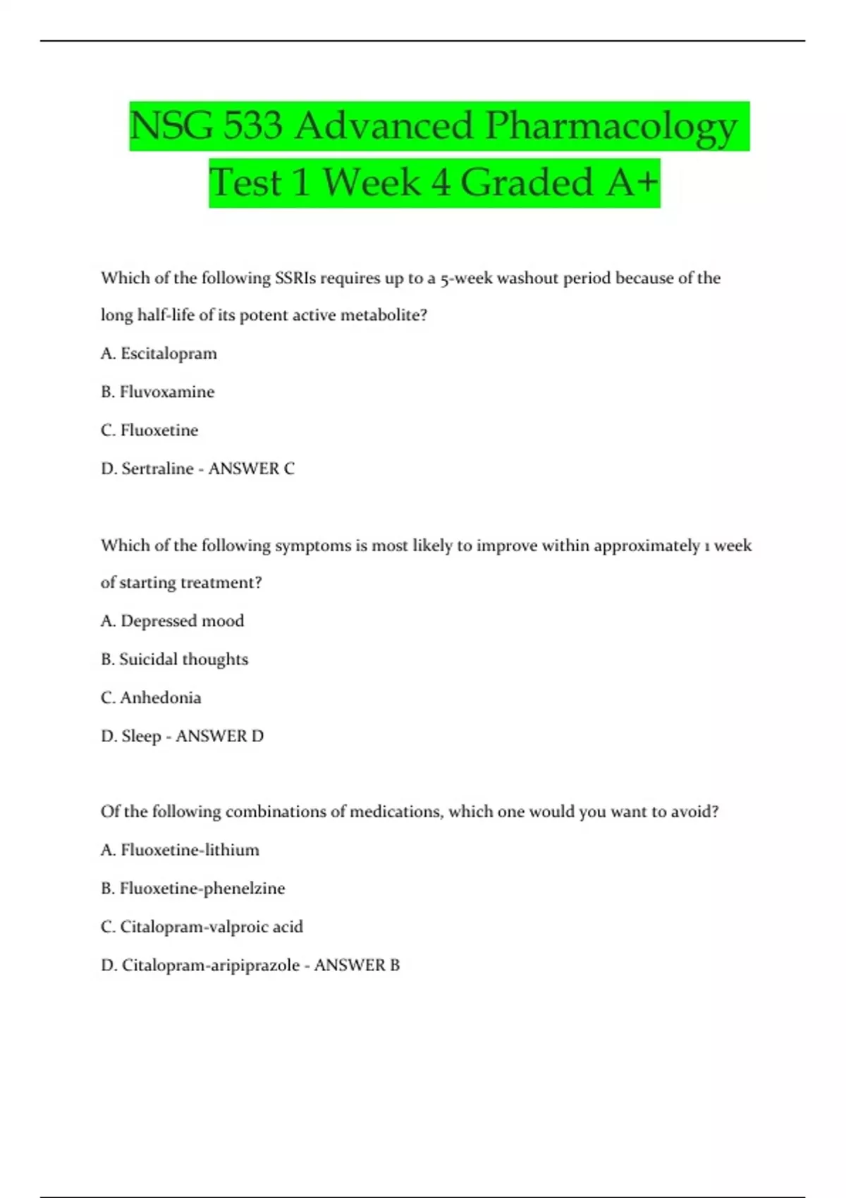 D. Sertraline - ANSWER C