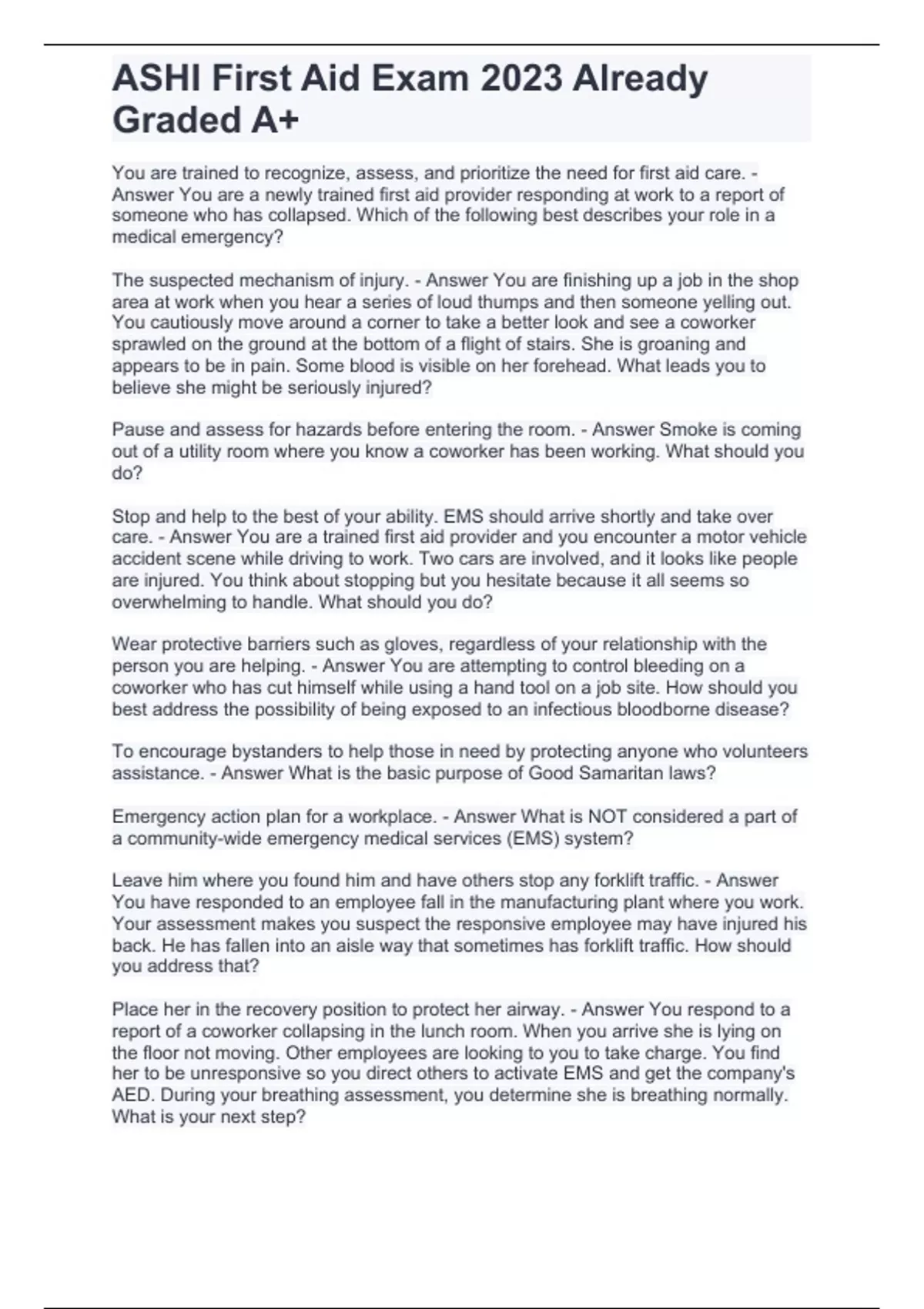 ASHI First Aid Exam 2023 Already Graded A+.