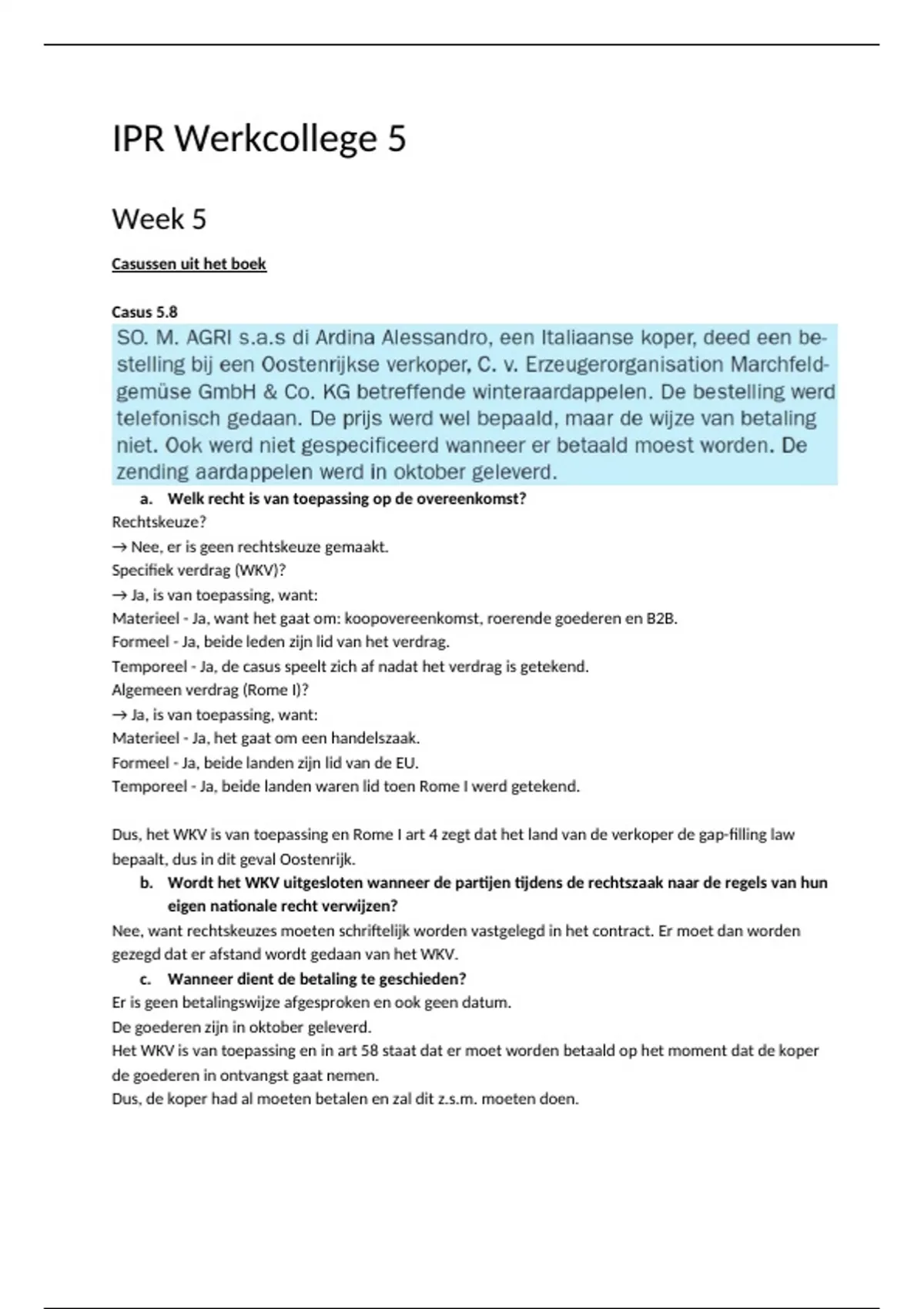 Uitwerking Werkcollege Internationaal Privaatrecht en Europees Recht - Week 5