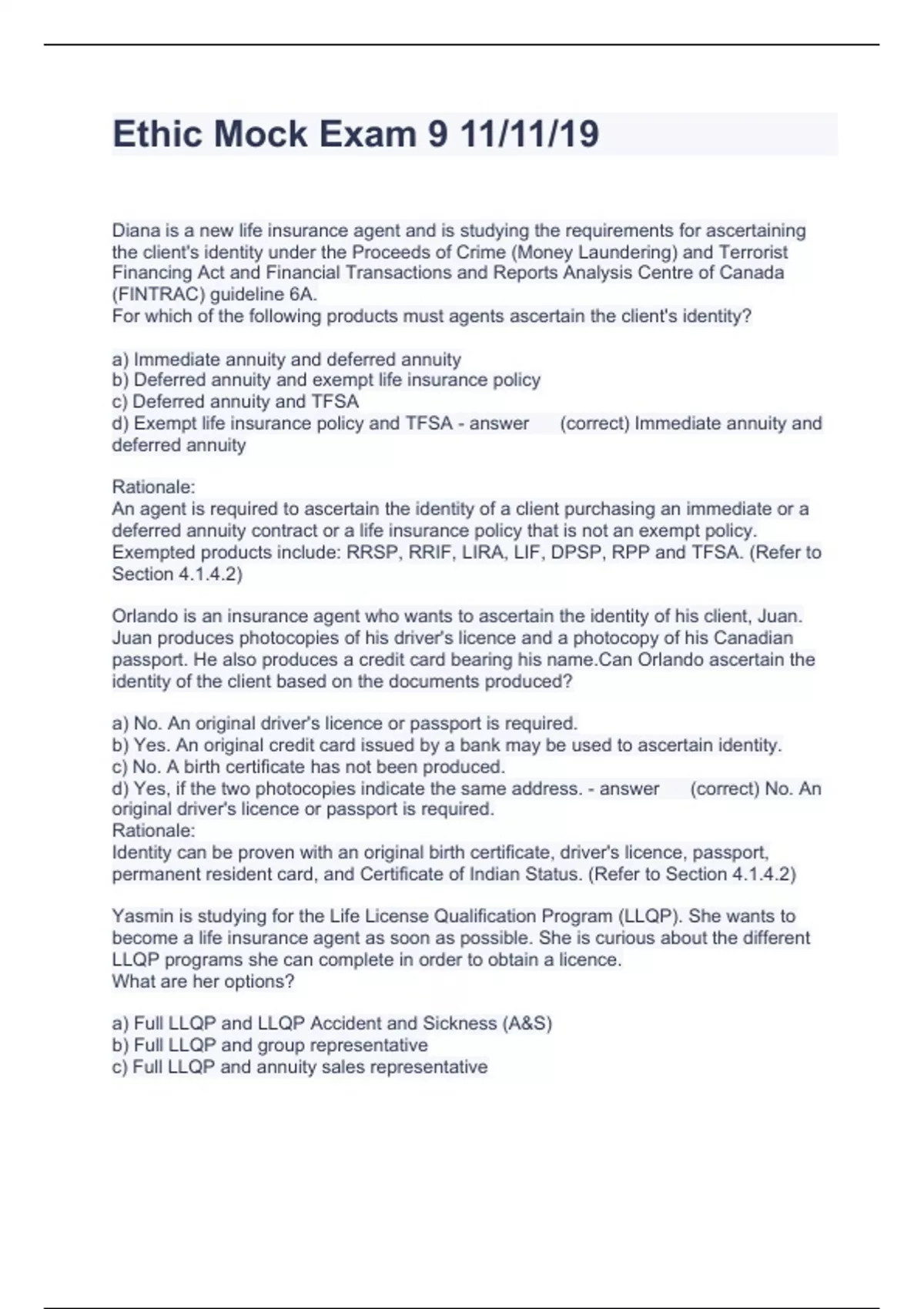 LLQP EXAM BUNDLE SET 2023 VERIFIED
