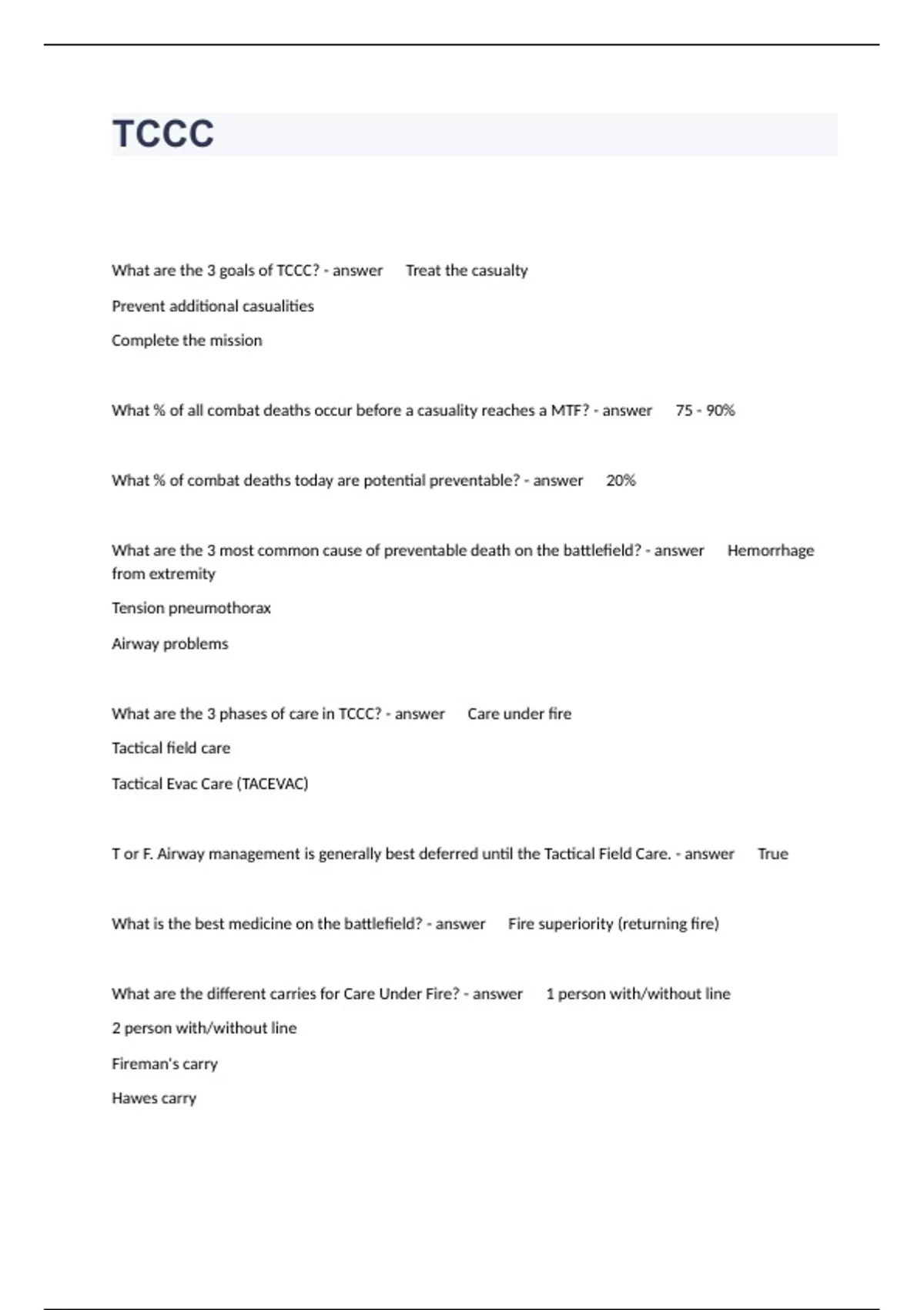 TCCC EXAM BUNDLE SET 2023 ALREADY PASSED