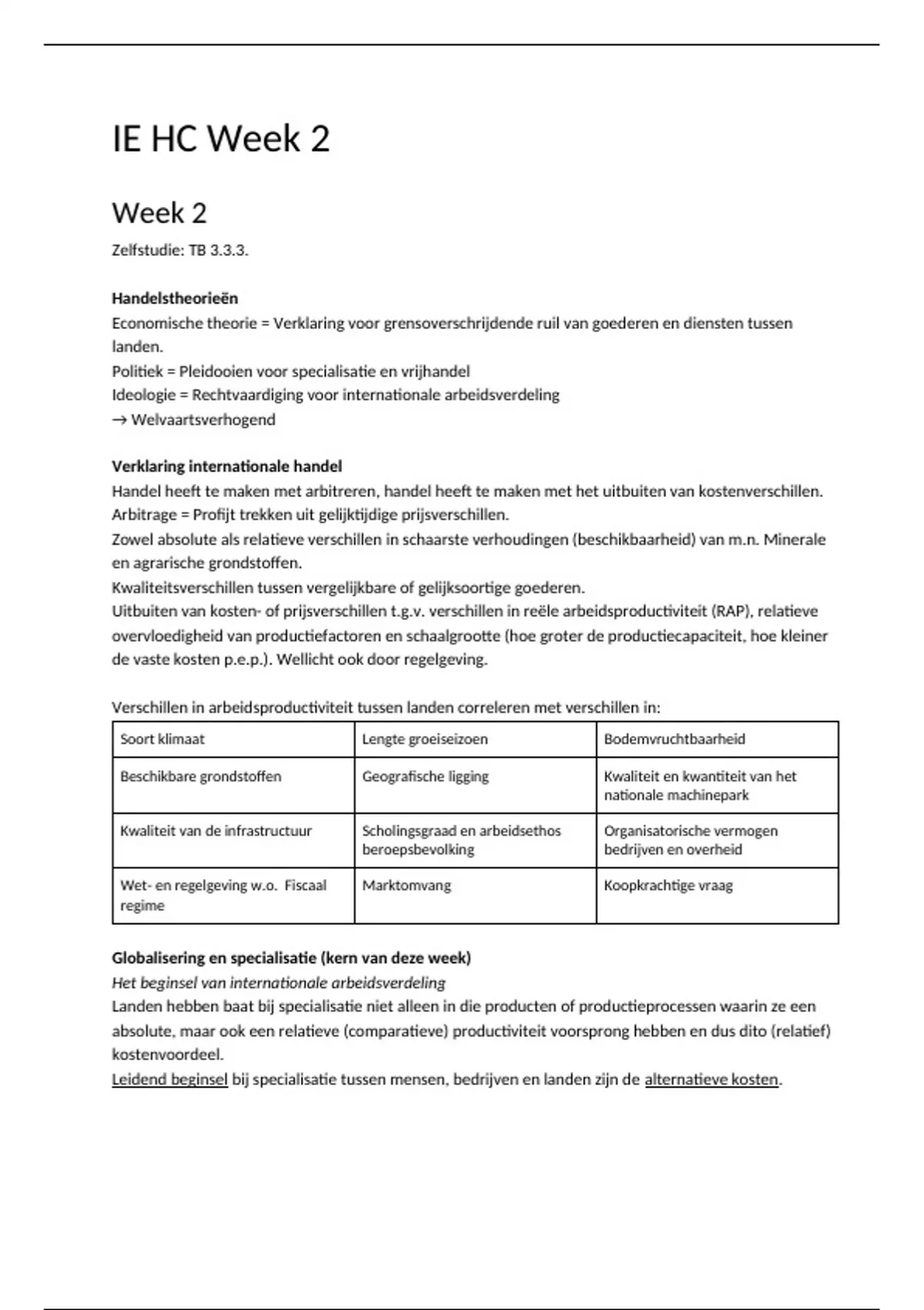 Hoorcollege aantekeningen Internationale Economie - Week 2