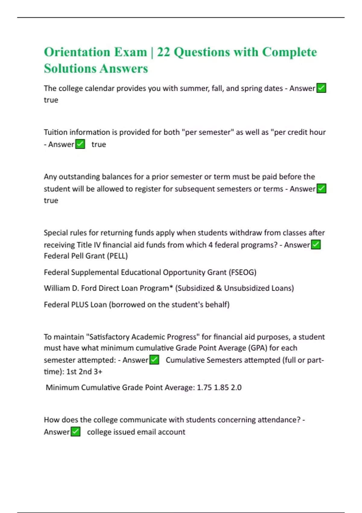 Student Orientation BUNDLED Exam Questions and Answers with Updated Solutions | 100% Verified | 2023-2024