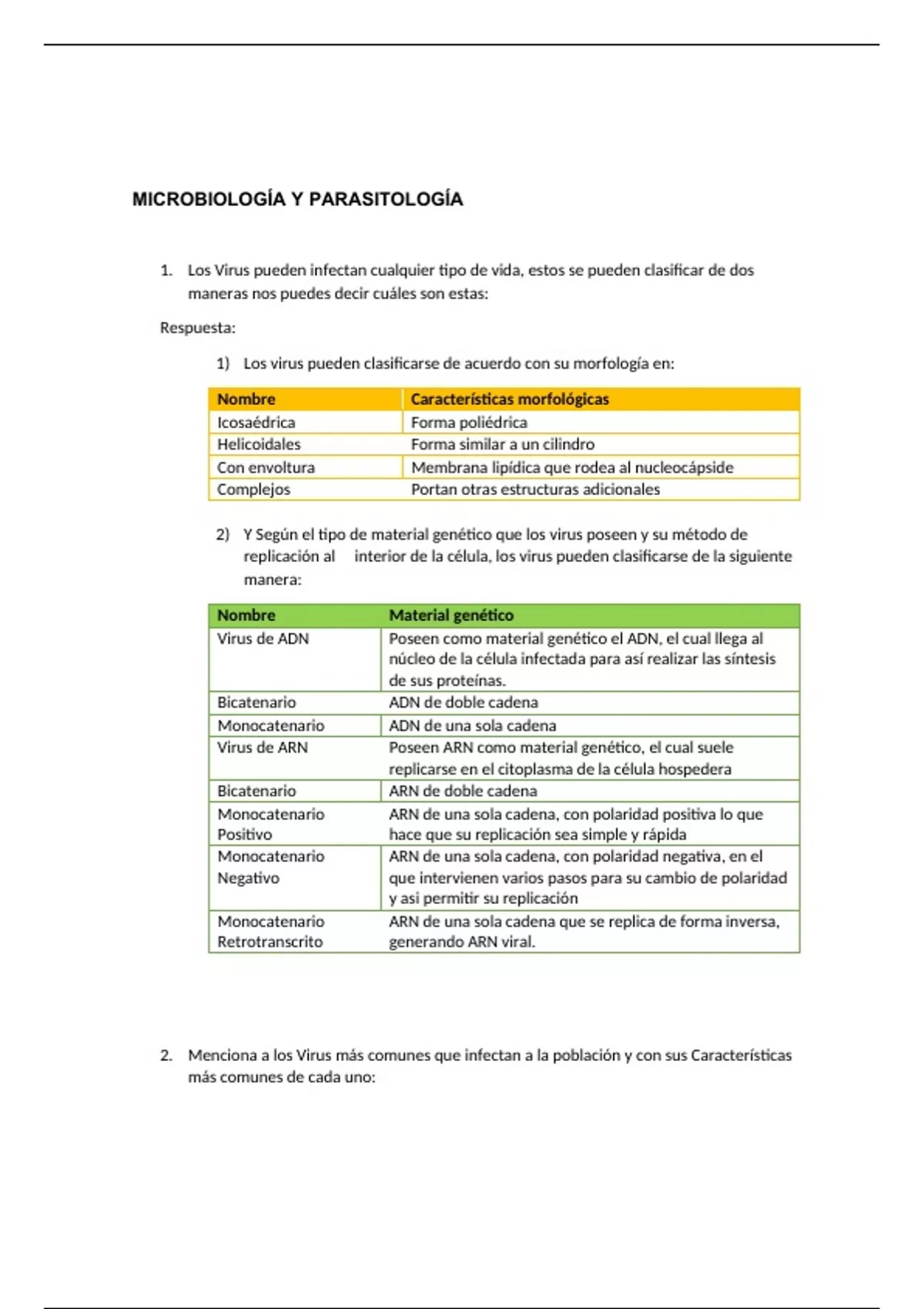 2) Y Según el tipo de material genético que los virus poseen y su método de