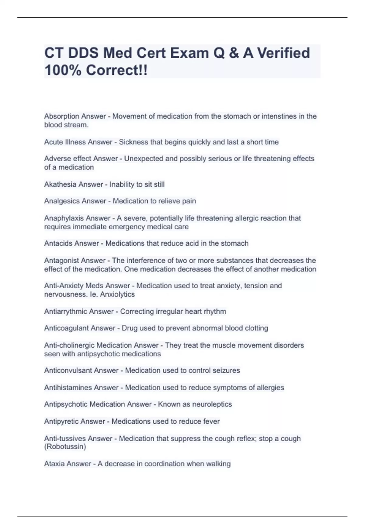 CT DDS Med Cert Exam Q & A Verified 100% Correct!!