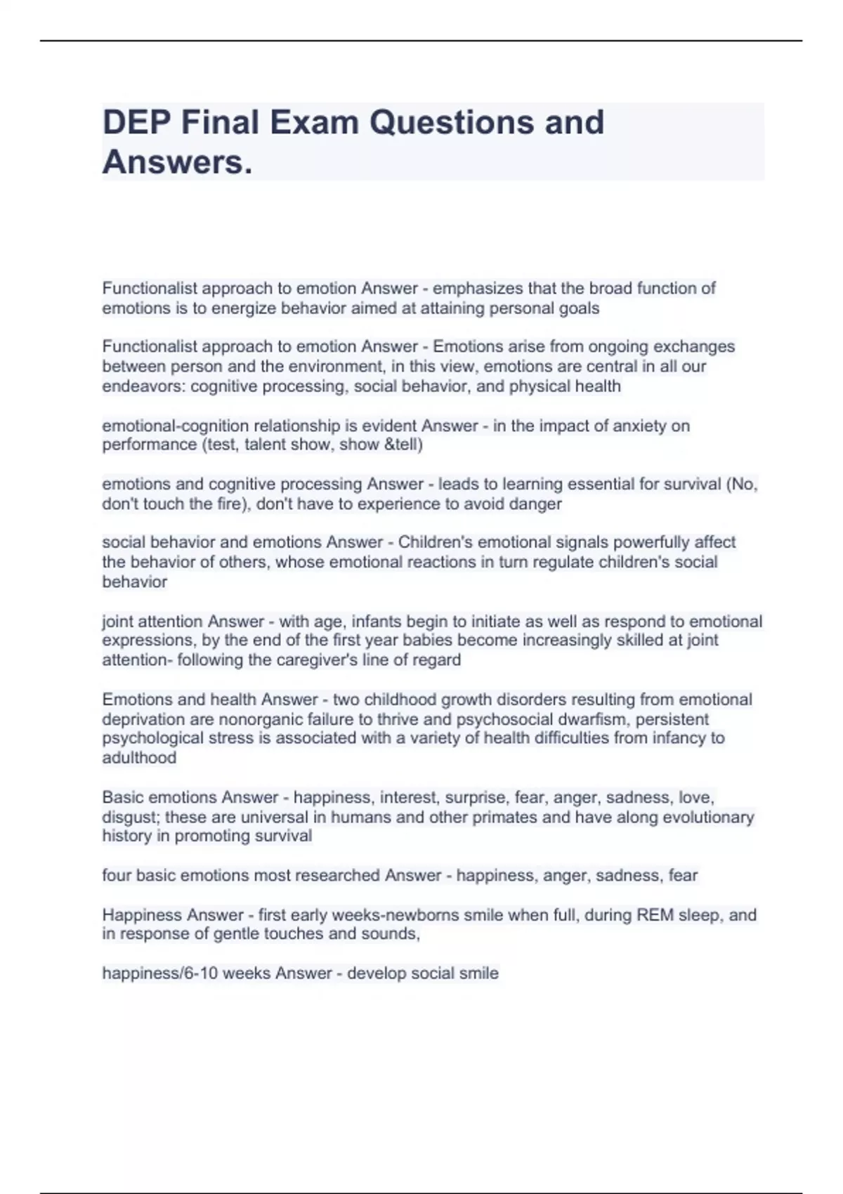 DEP Final Exam Questions and Answers.