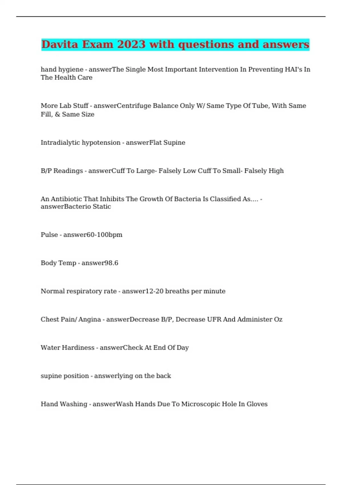 davita exam 2023 with questions and answers