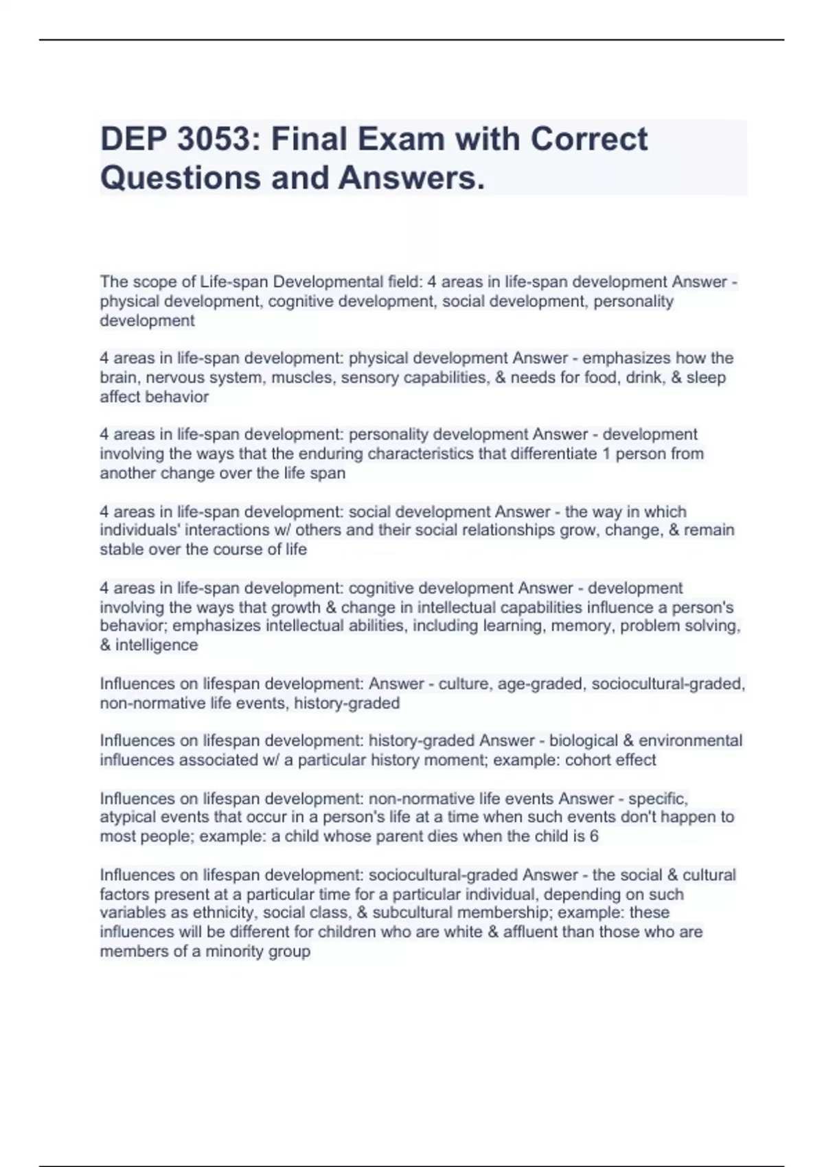 dep 3053 final exam with correct questions and an