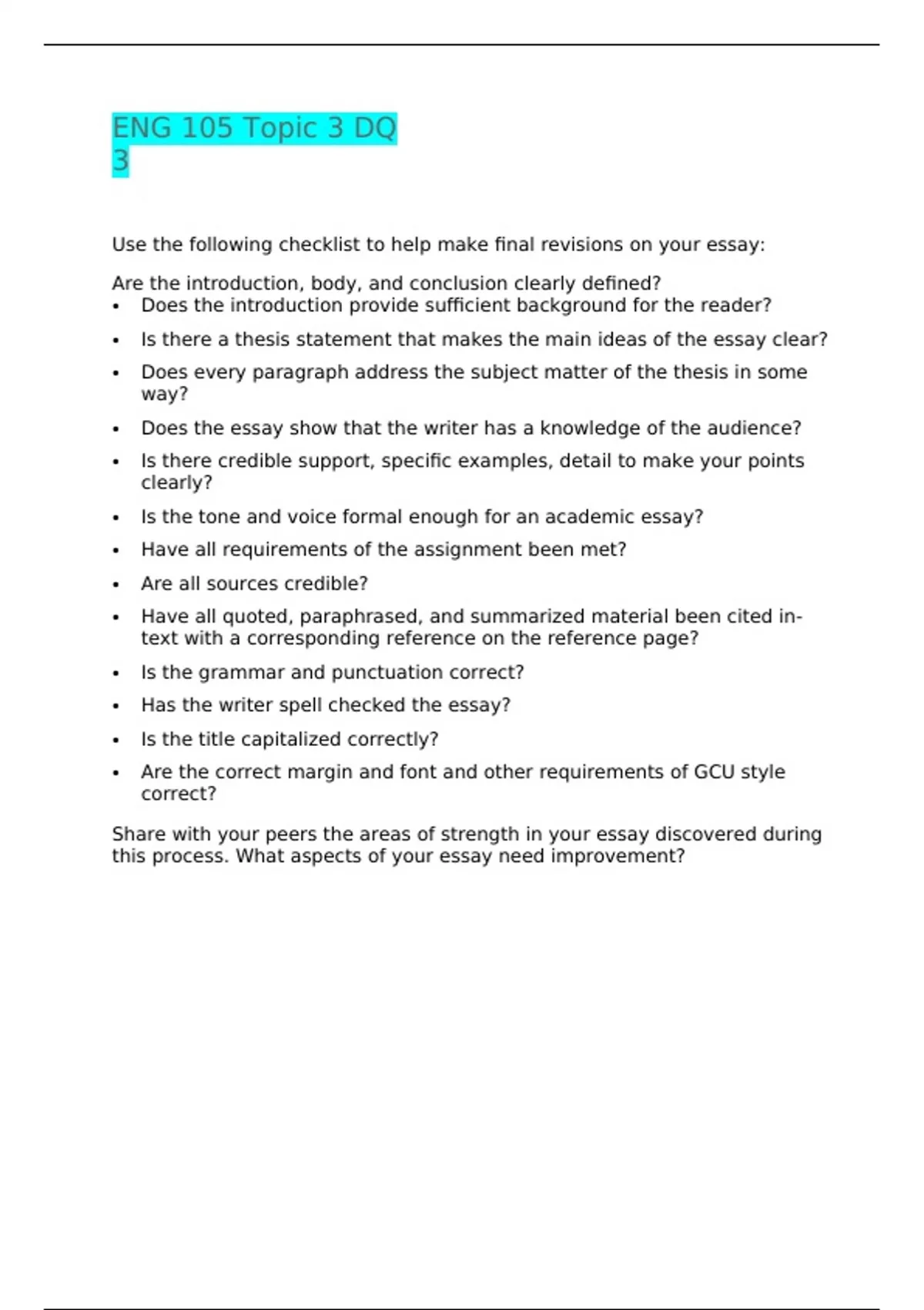 ENG – 105 Topic 3 DQ 3 Correctly Answered /LATEST UPDATE VERSION/ GRADED A+