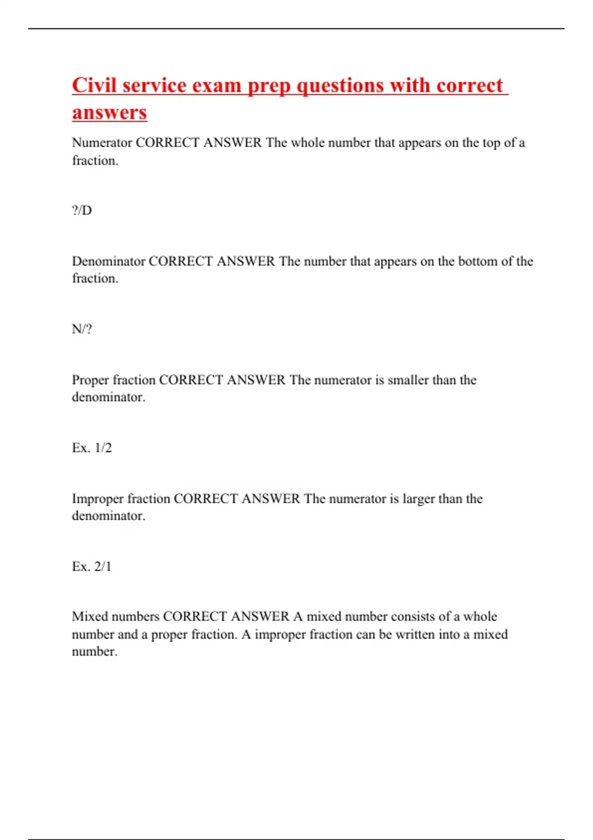 Civil service exam prep questions with correct answers