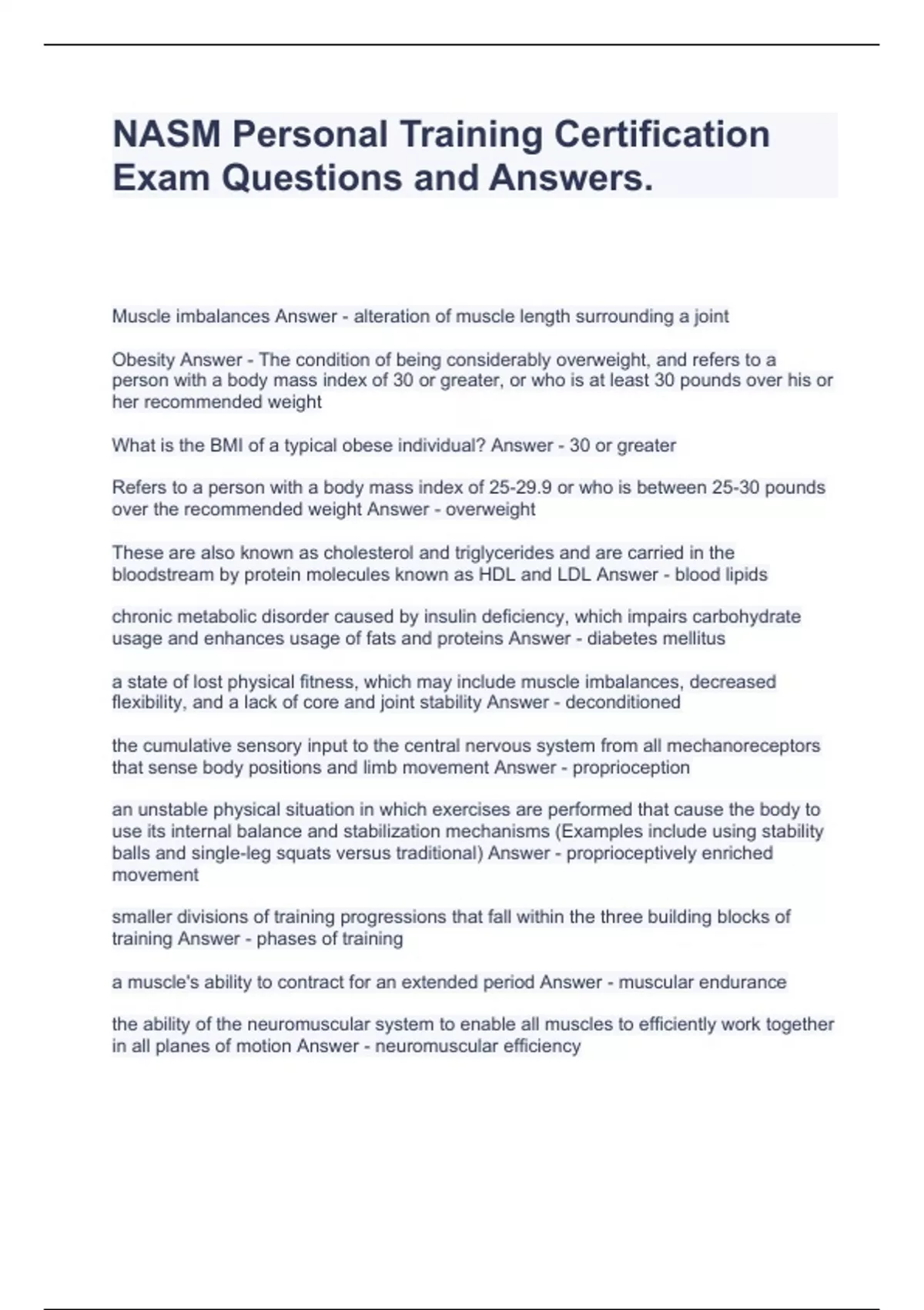 NASM Personal Training Certification Exam Questions and Answers.