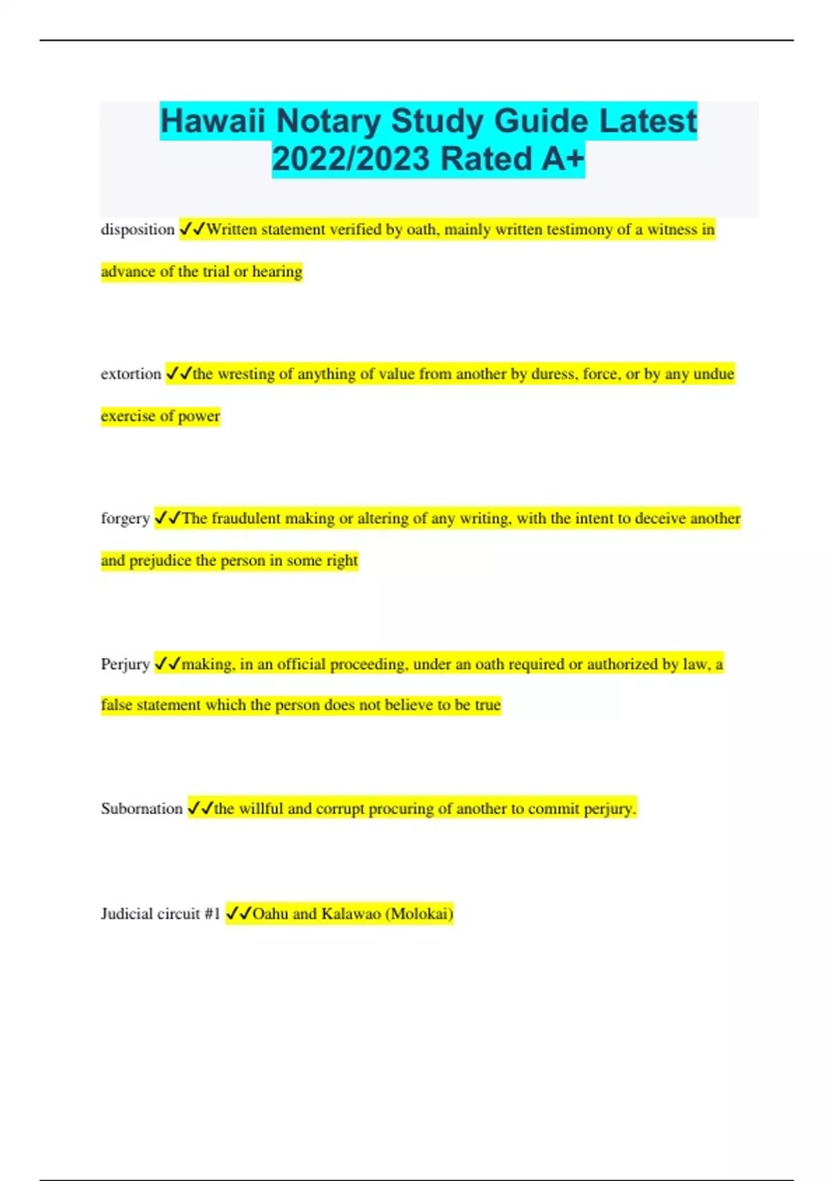 Hawaii Notary Study Guide Latest 2022/2023 Rated A+