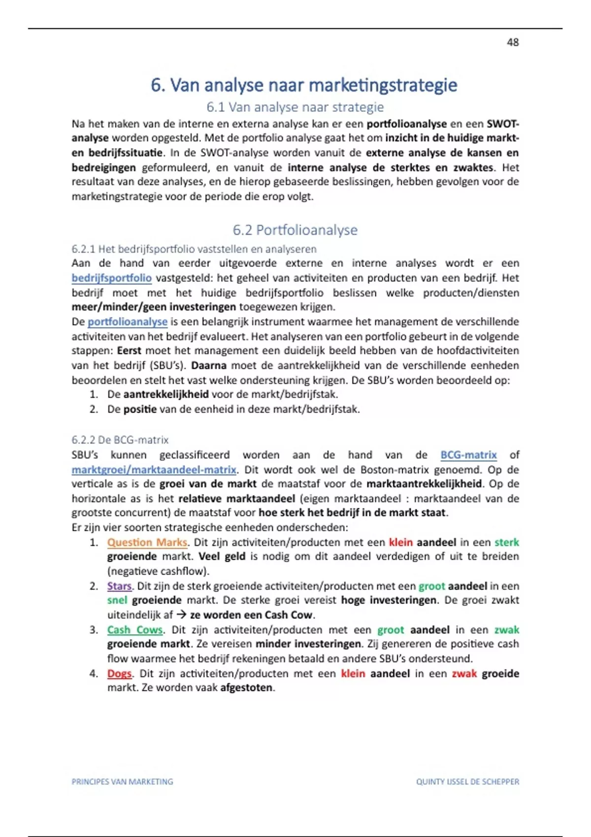Na het maken van de interne en externa analyse kan er een portfolioanalyse en een SWOT-