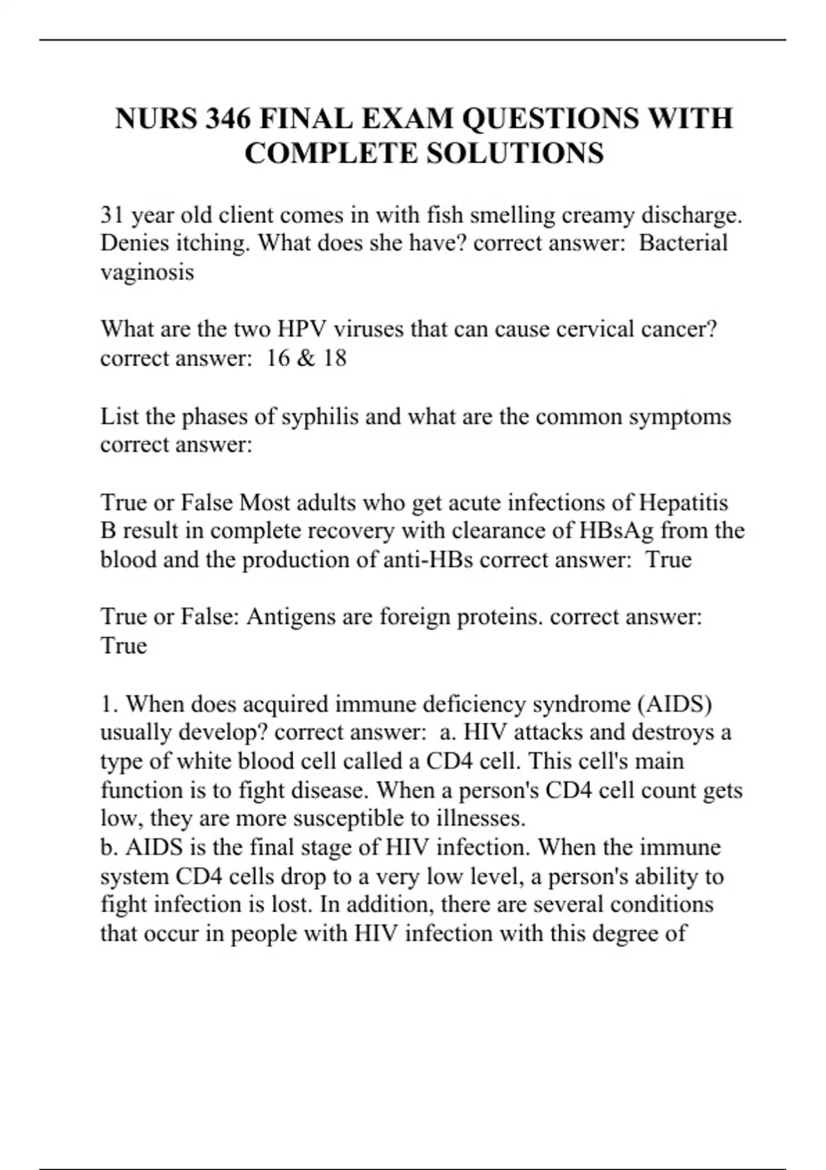 nurs 346 final exam questions with complete soluti