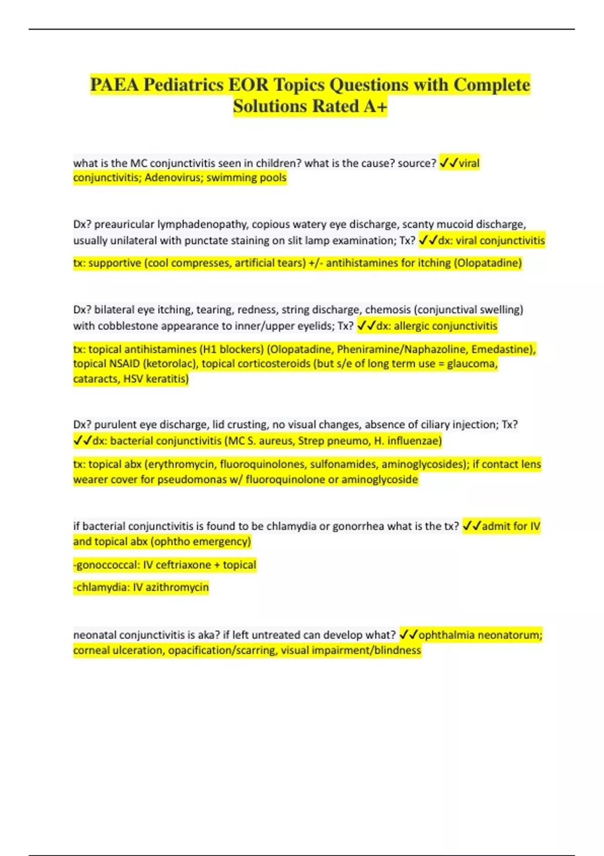 PAEA Pediatrics EOR Topics Questions with Complete Solutions Rated A+