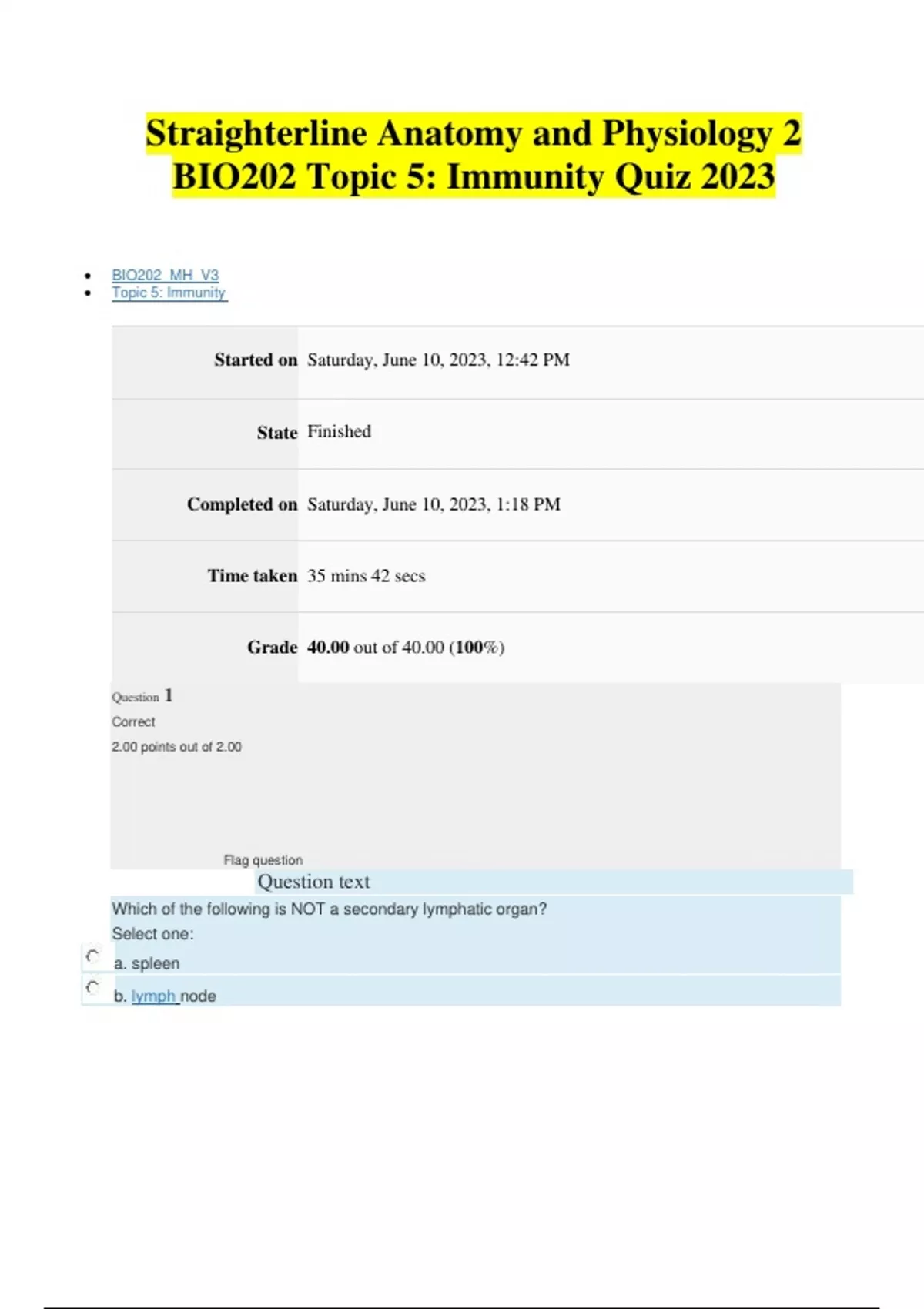 Straighterline Anatomy and Physiology 2 BIO202 Topic 5: Immunity Quiz 2023