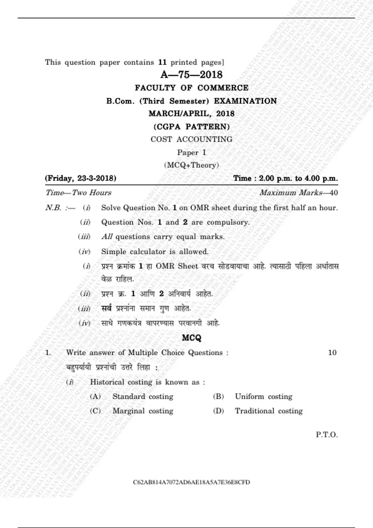 Cost a/c question paper