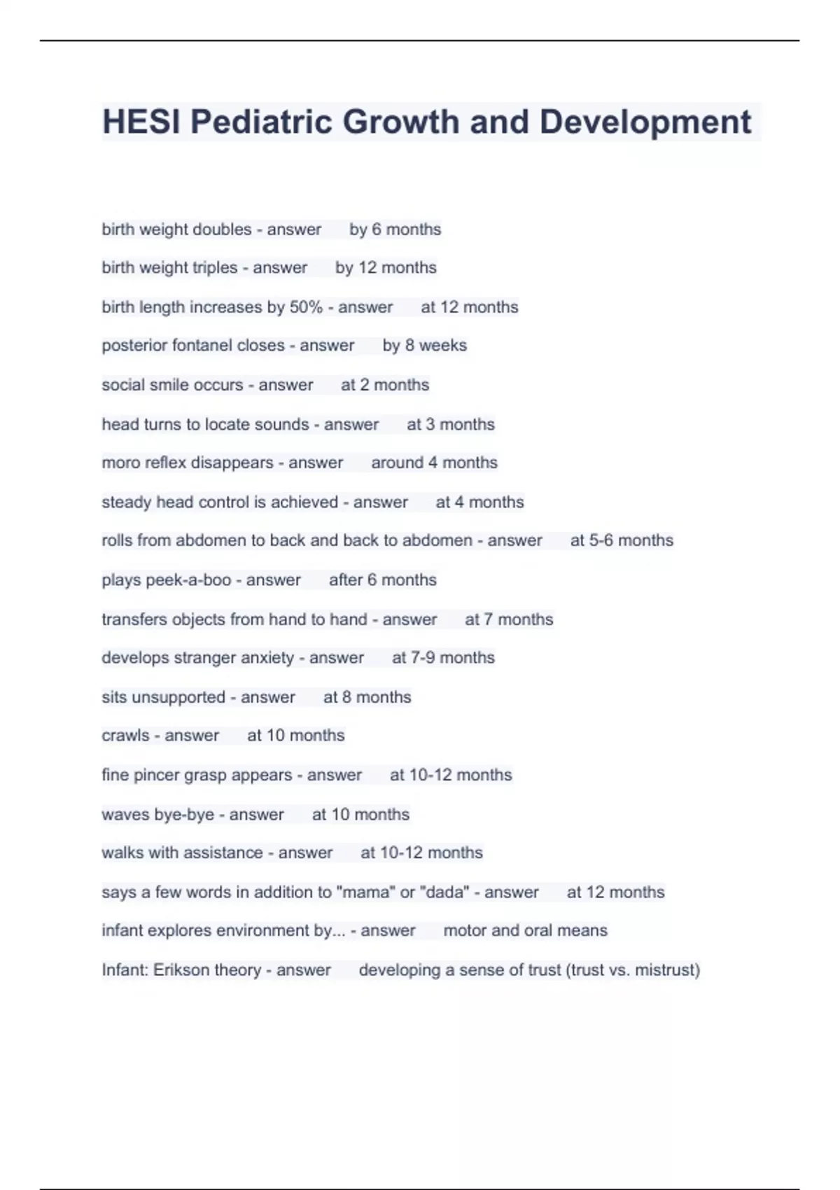 HESI Pediatric Growth and Development Questions and Answers 100% Correct