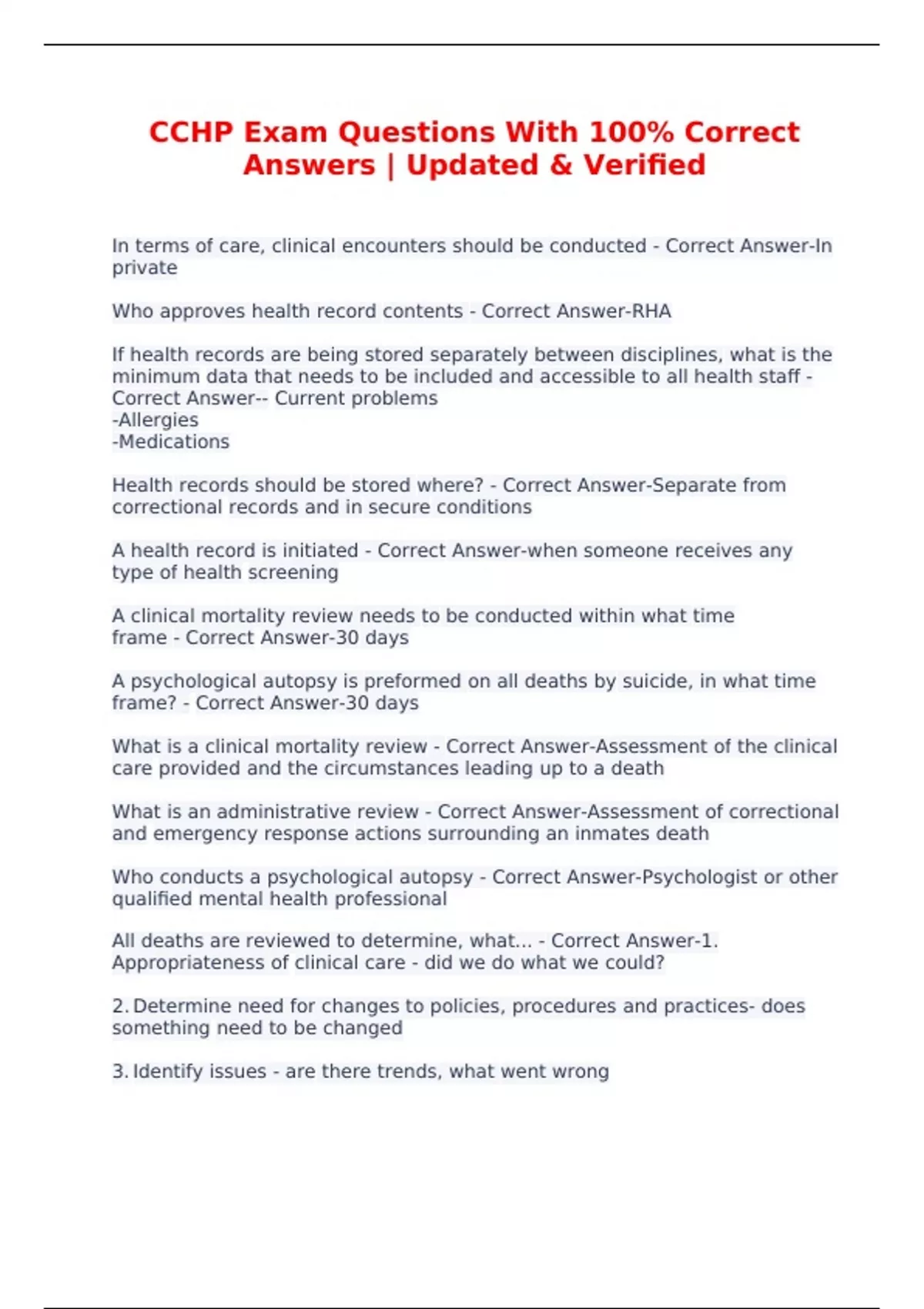 CCHP Exam Questions With 100% Correct Answers | Updated & Verified