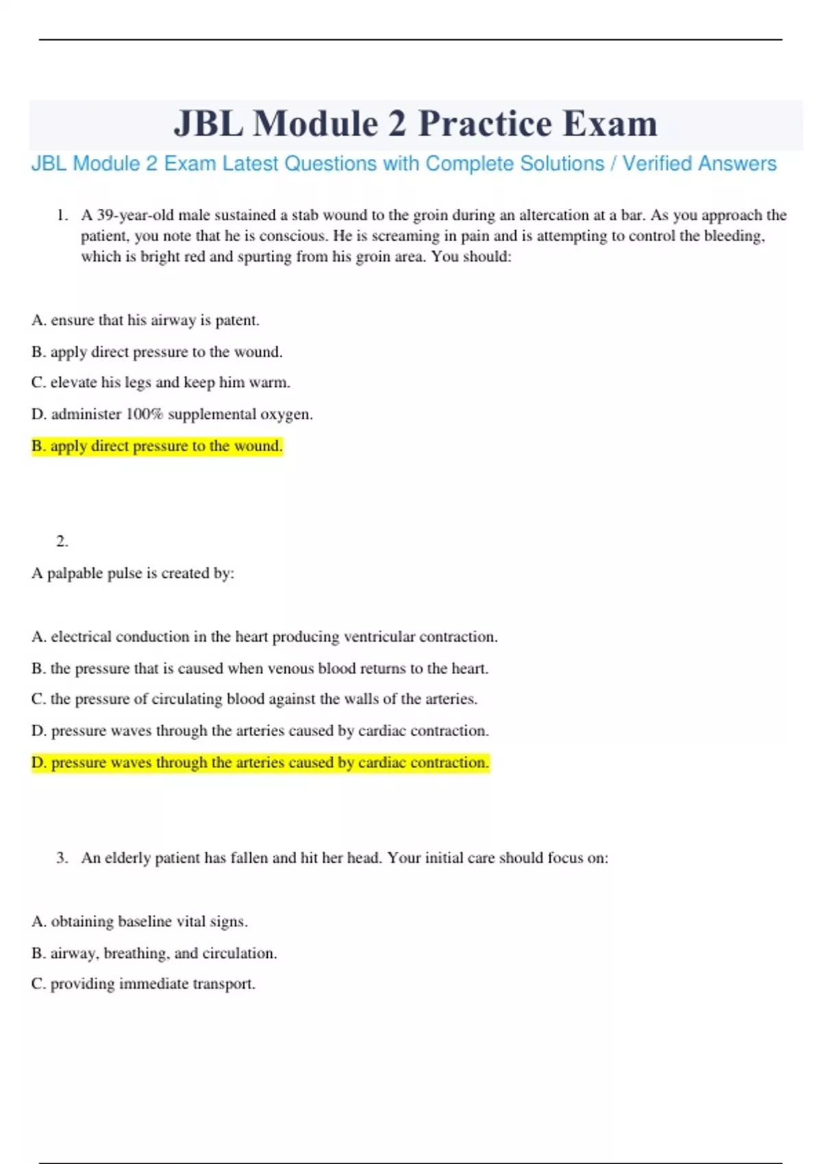 JONES & BARTLETT LEARNING|JBL Module 2 Exam Latest Questions with Complete Solutions / Verified Answers