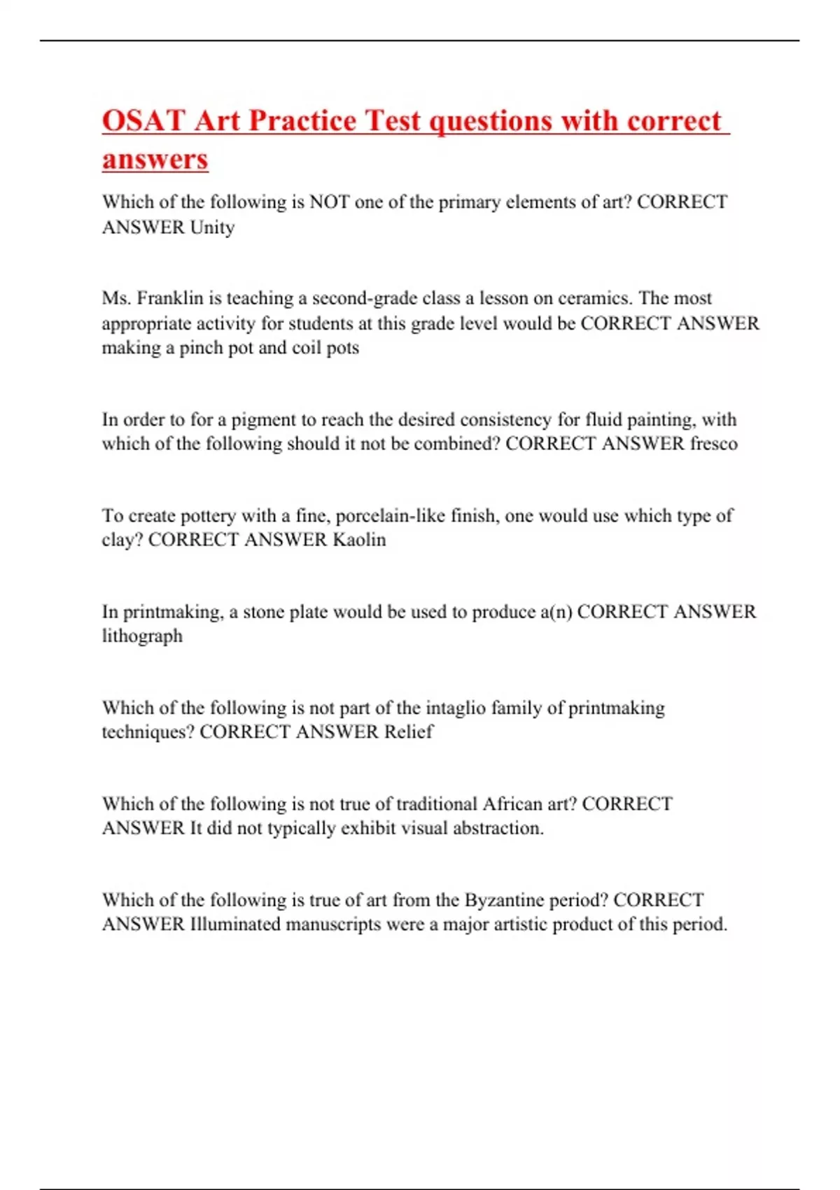 OSAT Art Practice Test questions with correct answers