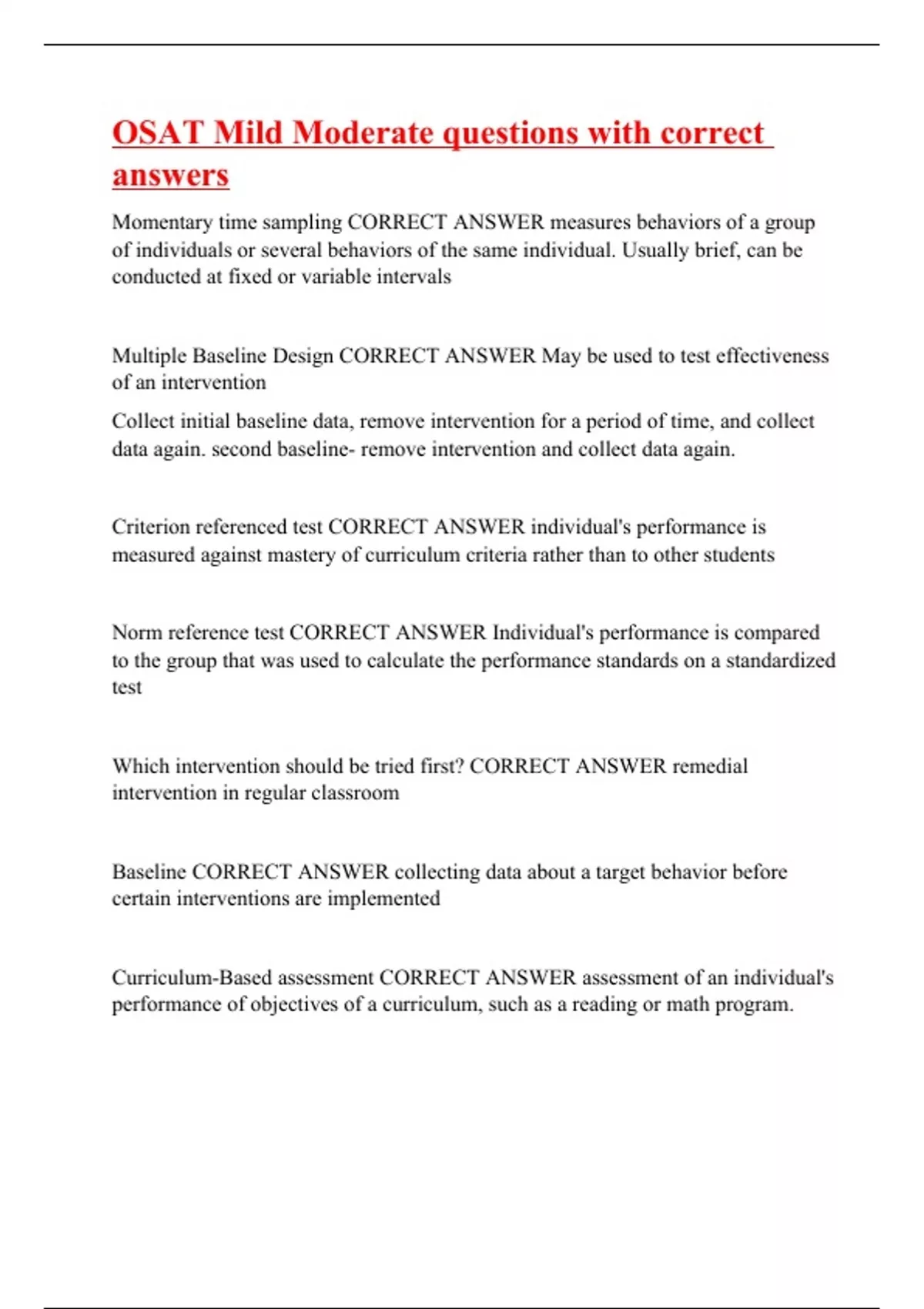OSAT Mild Moderate questions with correct answers