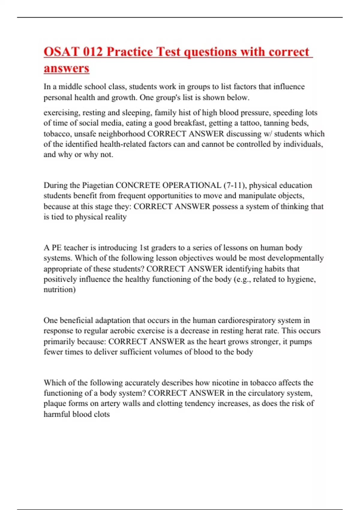 OSAT 012 Practice Test questions with correct answers