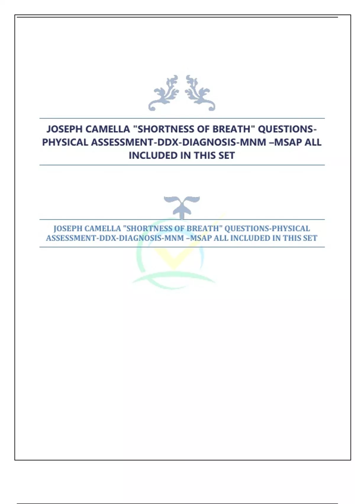 JOSEPH CAMELLA "SHORTNESS OF BREATH" QUESTIONSPHYSICAL ASSESSMENT-DDX-DIAGNOSIS-MNM –MSAP ALL INCLUDE