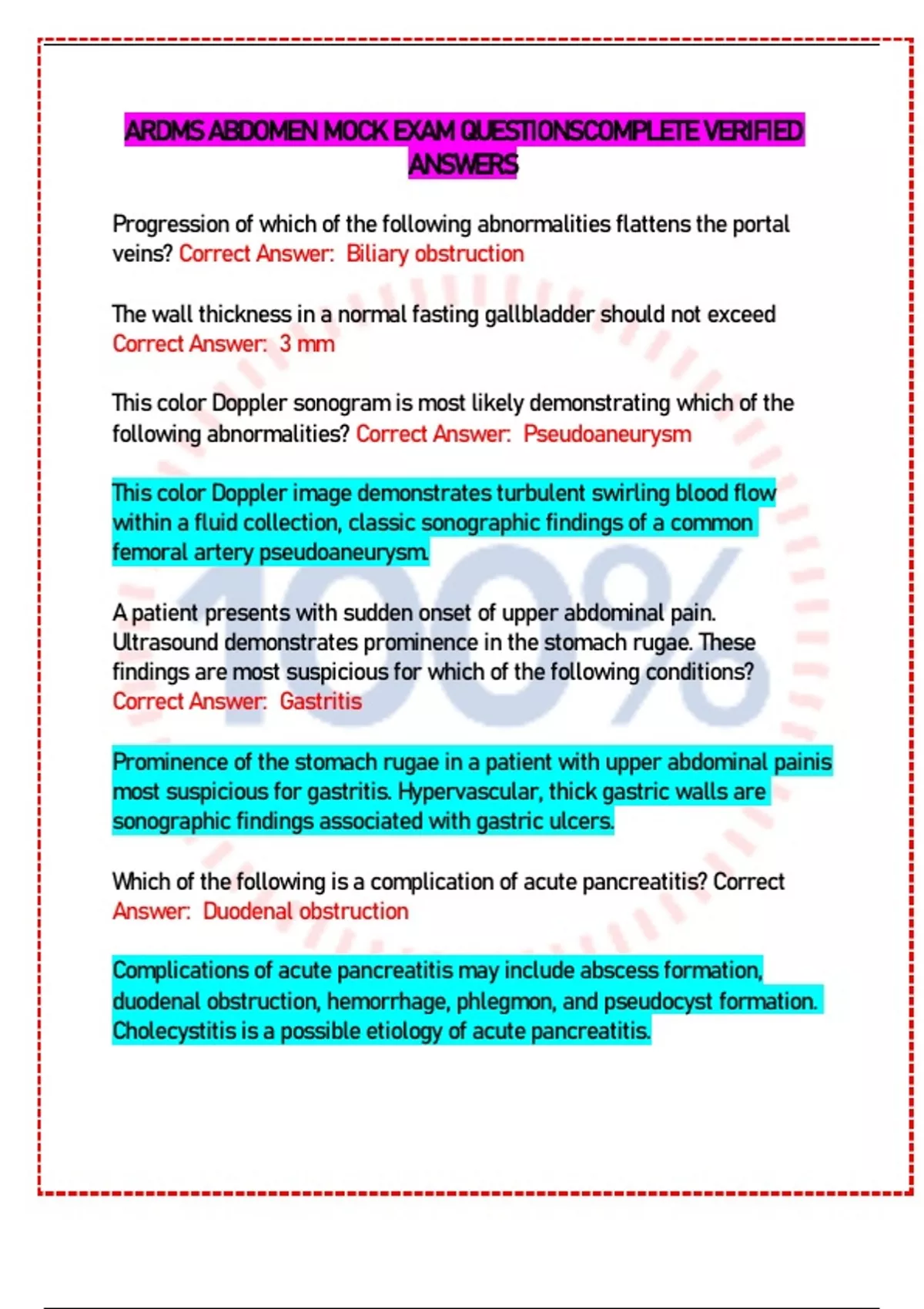 ARDMS ABDOMEN MOCK EXAM QUESTIONS COMPLETE VERIFIED ANSWERS