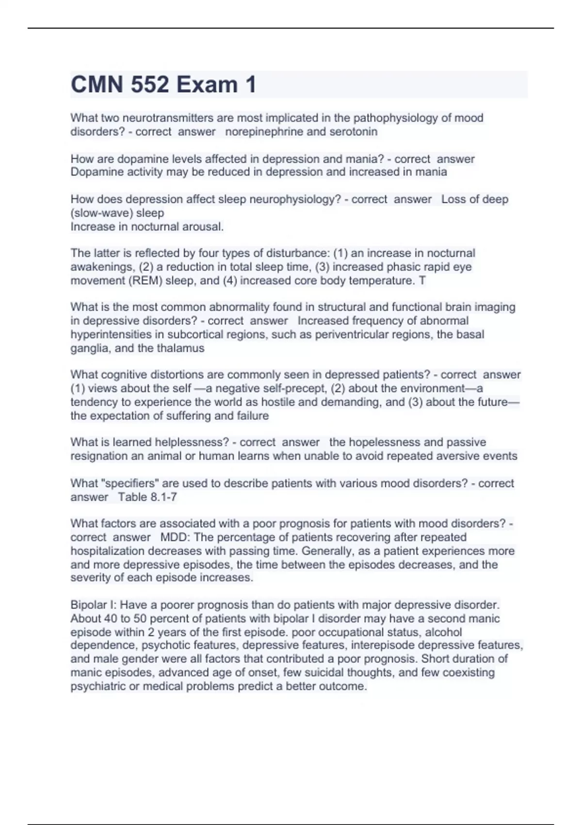 How does depression affect sleep neurophysiology? - correct answer Loss of deep
