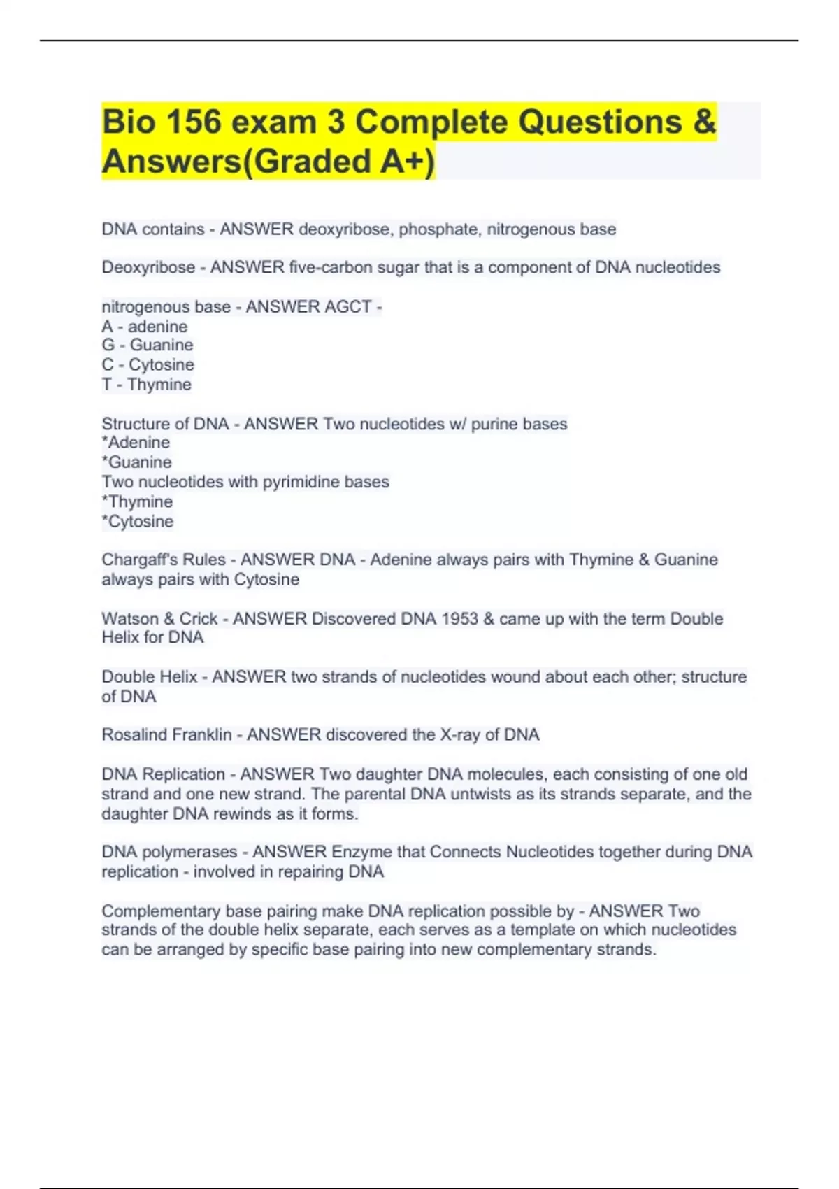 bio 156 exam 3 complete questions answersgraded