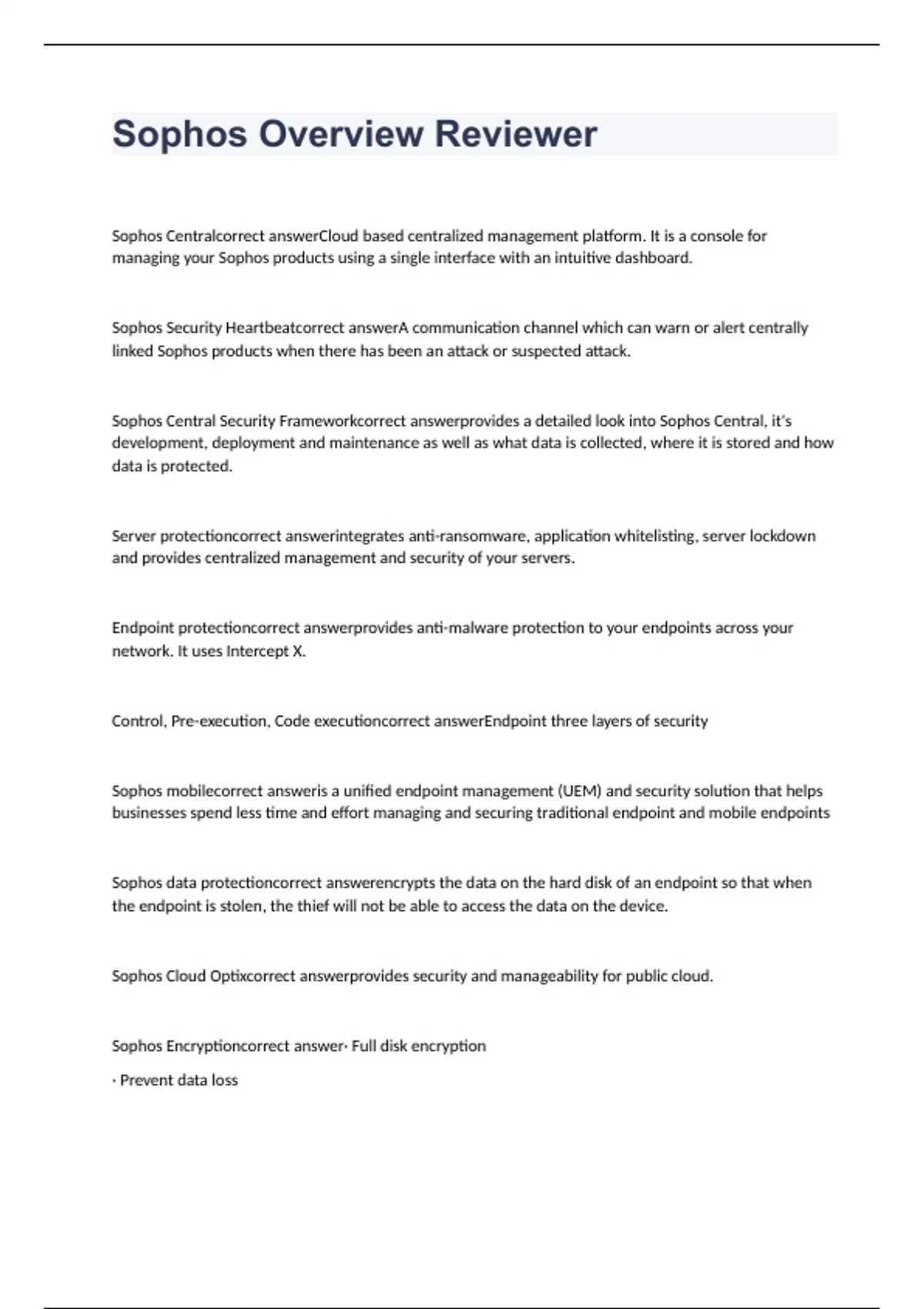 Sophos Overview Reviewer questions with correct answers