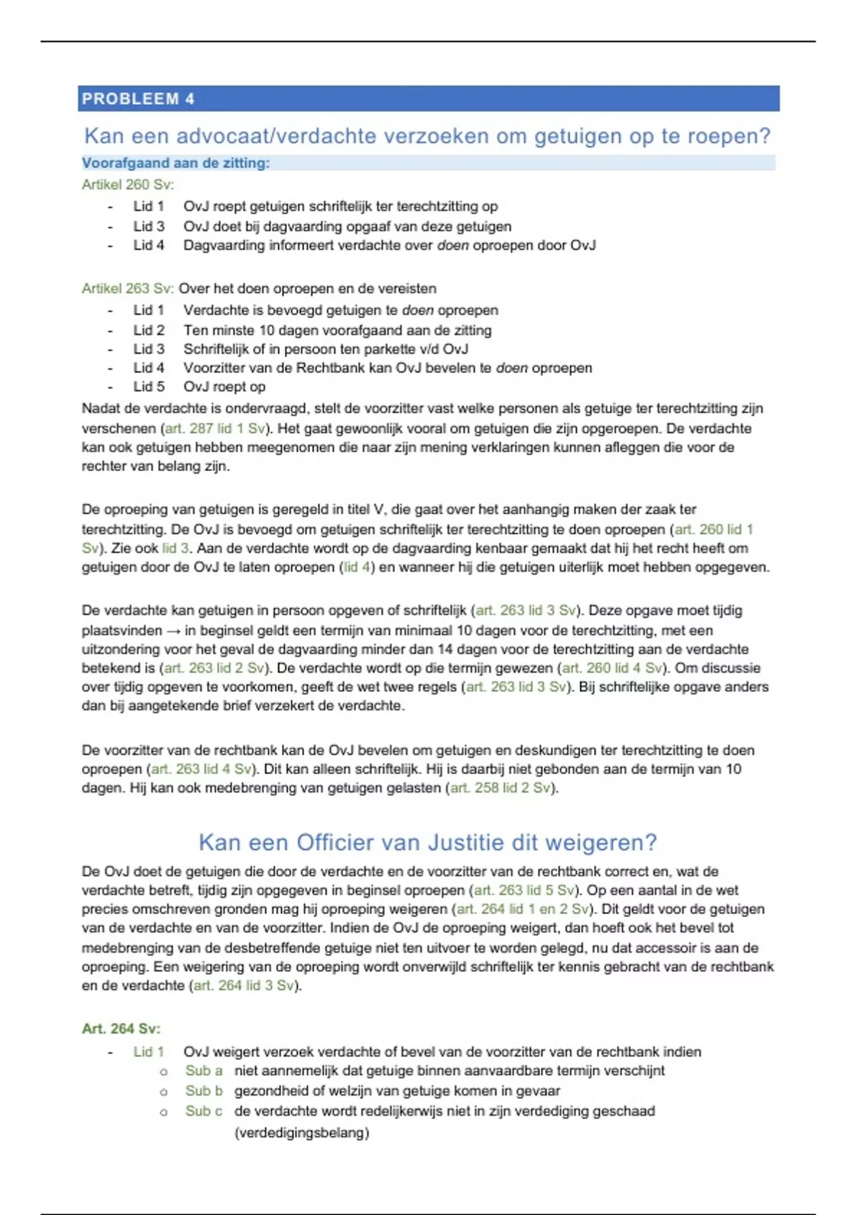 precies omschreven gronden mag hij oproeping weigeren (art. 264 lid 1 en 2 Sv). Dit geldt voor de getuigen