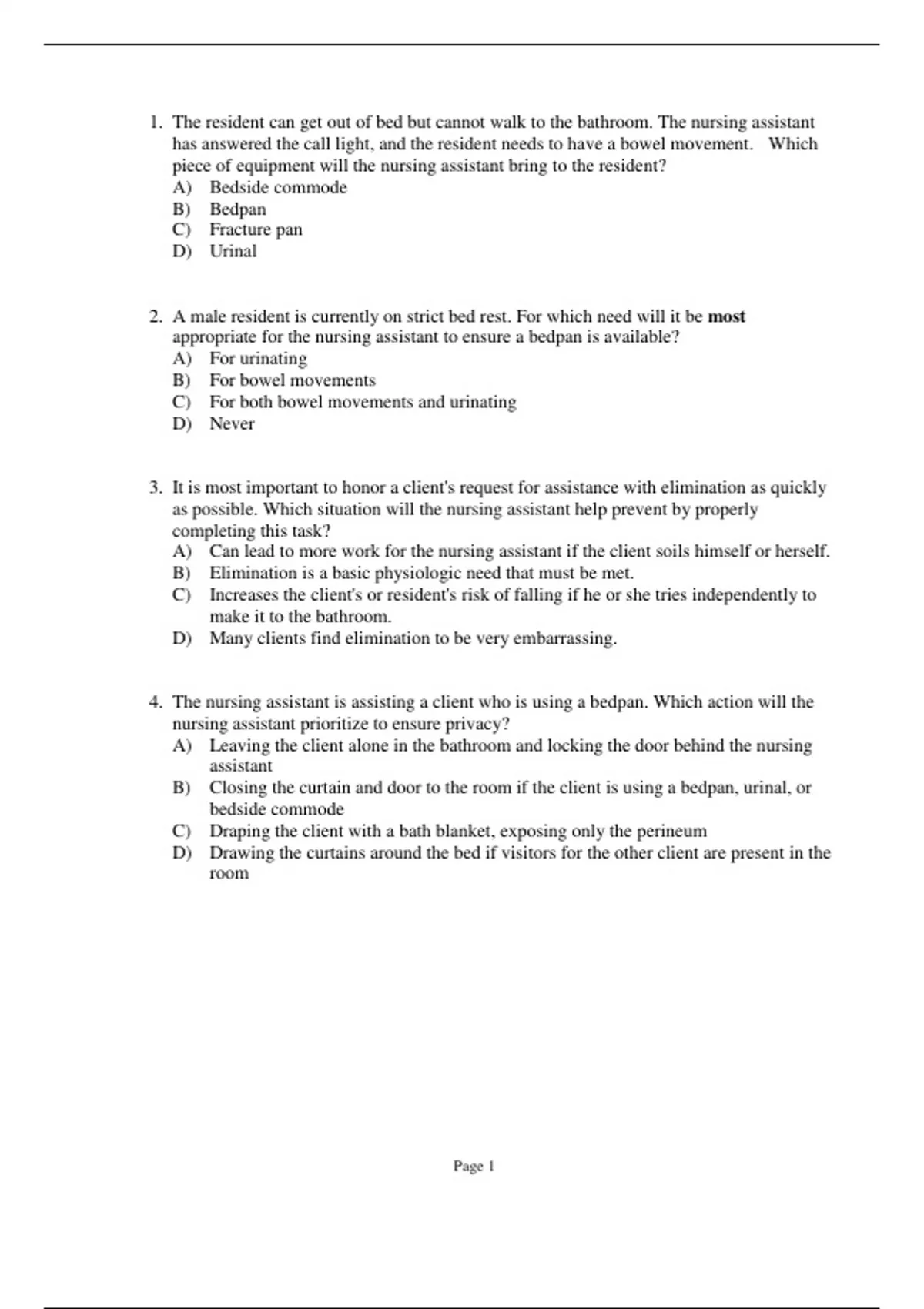 CNA EXAM. ASSISTING WITH URINARY AND BOWEL ELIMINATION