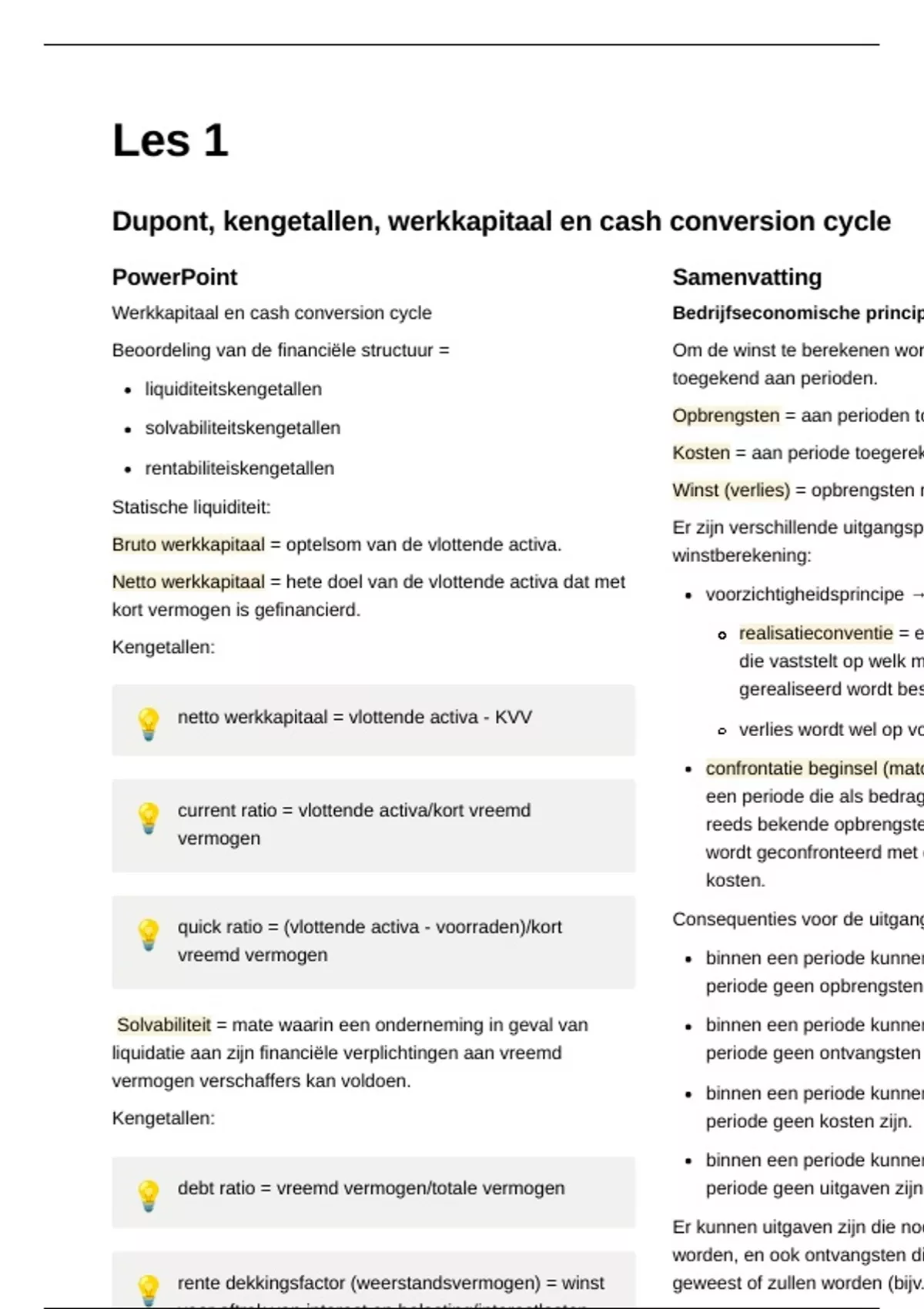 Werkkapitaal en cash conversion cycle Bedrijfseconomische princip