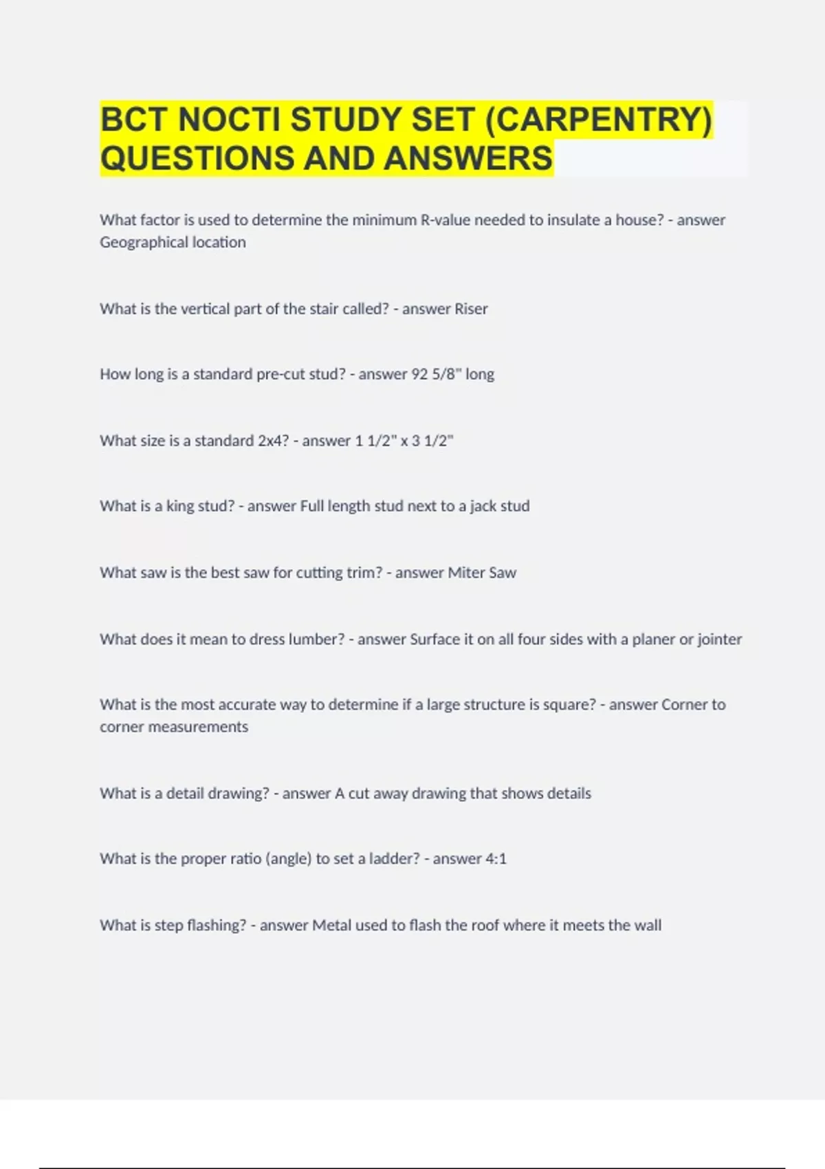 TCHS PB NOCTI SAMPLE QUESTIONS CARPENTRY WITH COMPLETE VERIFIED SOLUTIONS.