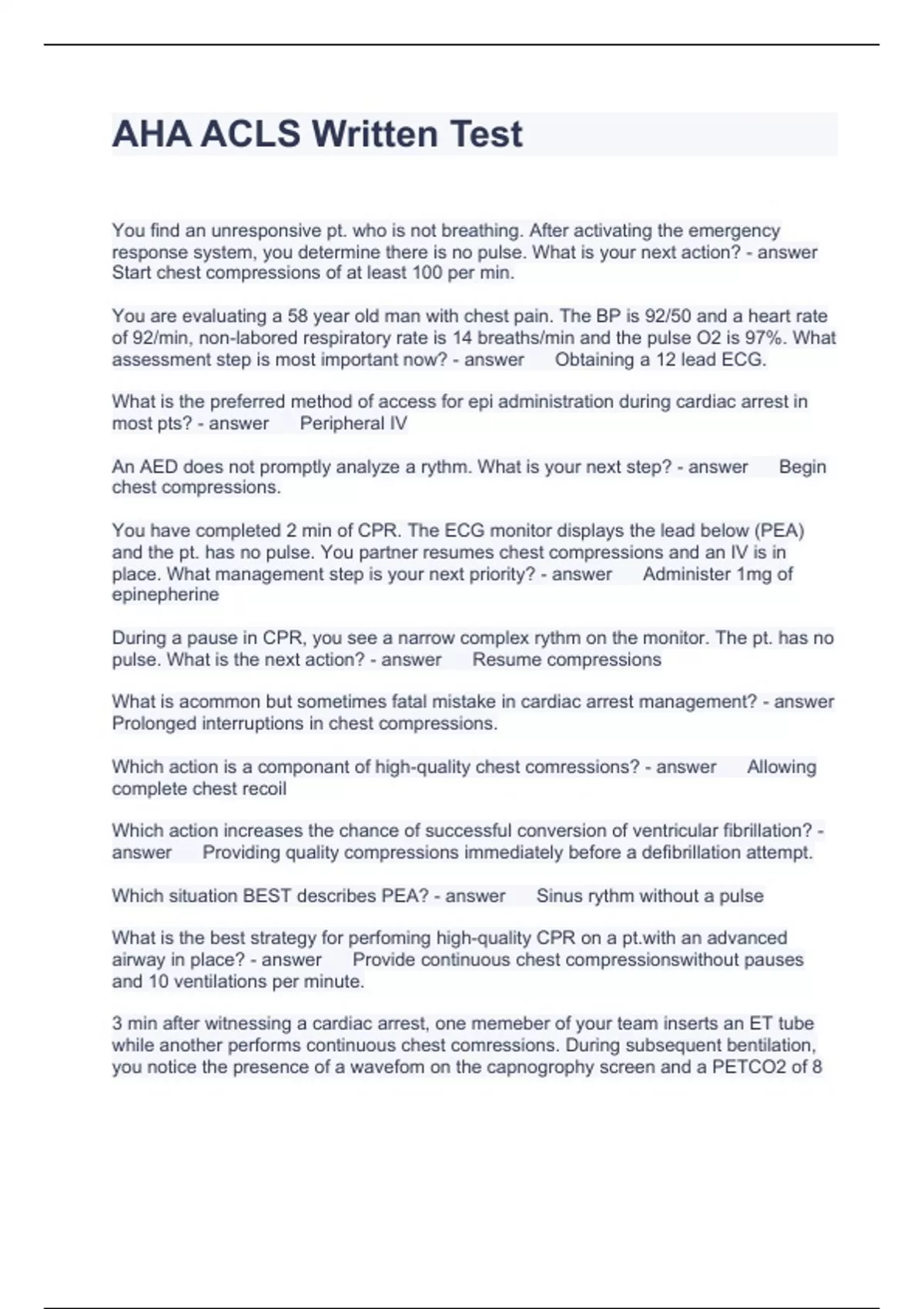 AHA ACLS Written Test Questions with Accurate Answers 2023