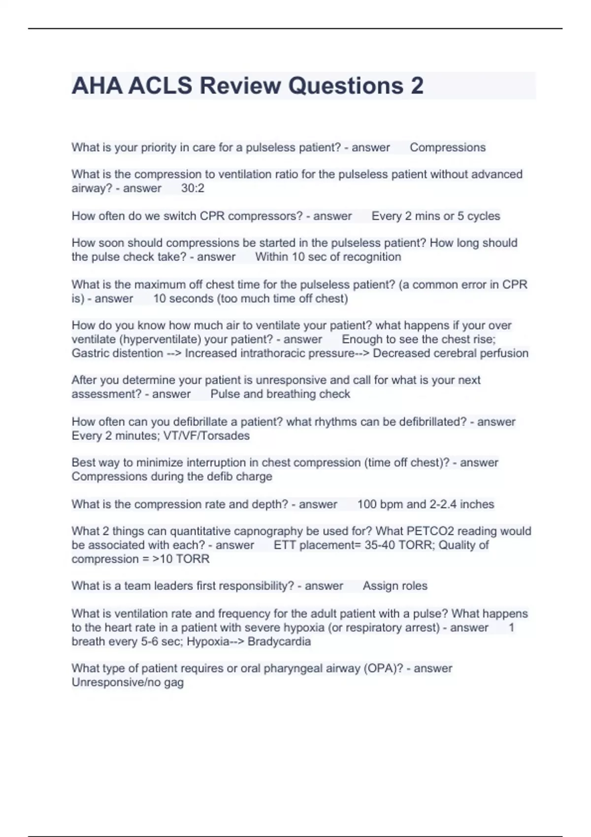 AHA ACLS Review Questions 2 latest updated, 2023