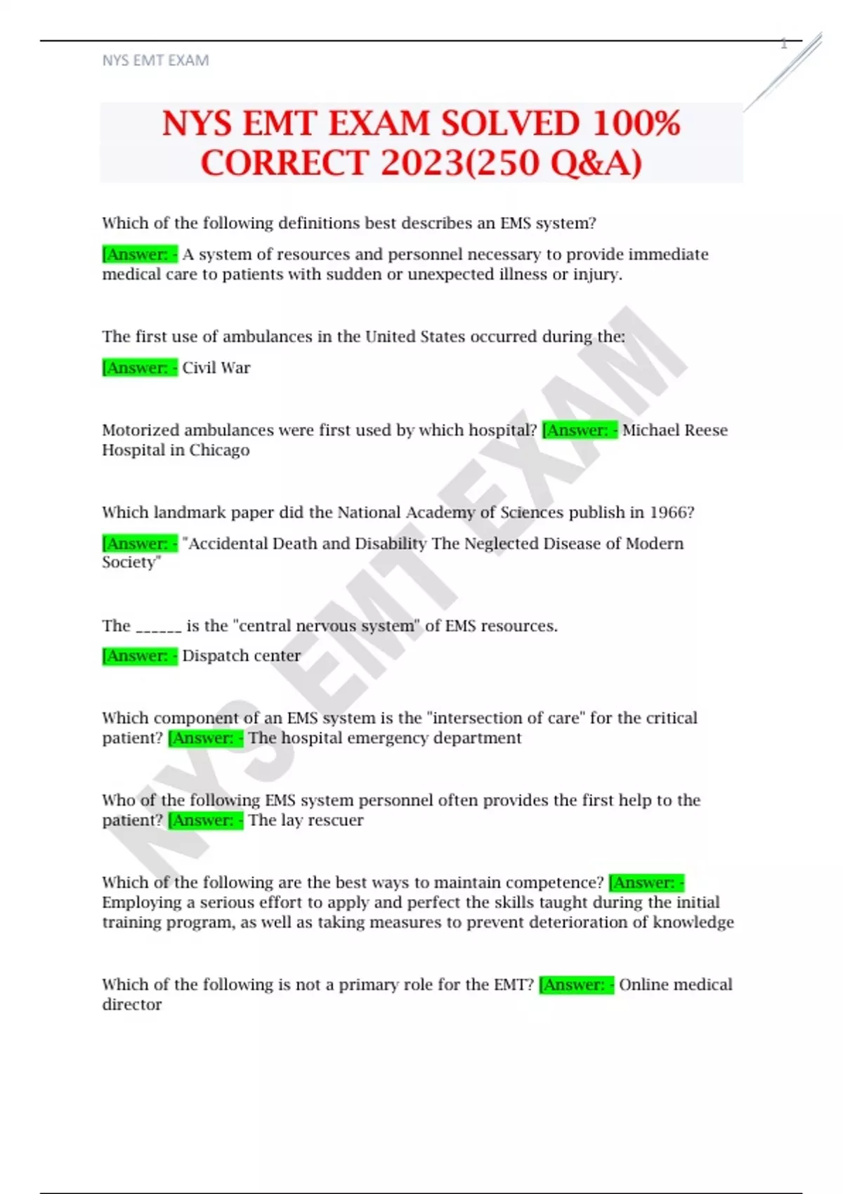 NYS EMT EXAM SOLVED 100% CORRECT 2023(250 Q&A)